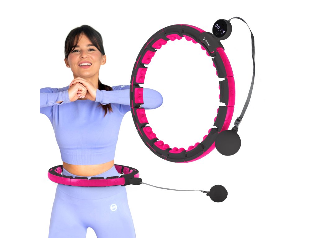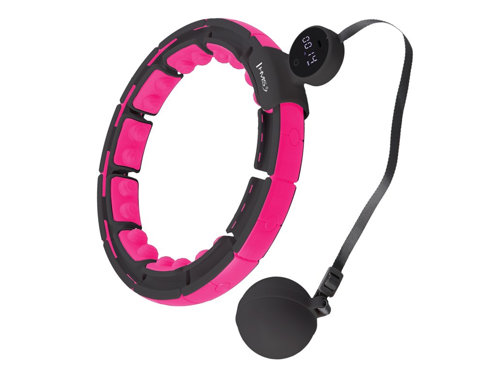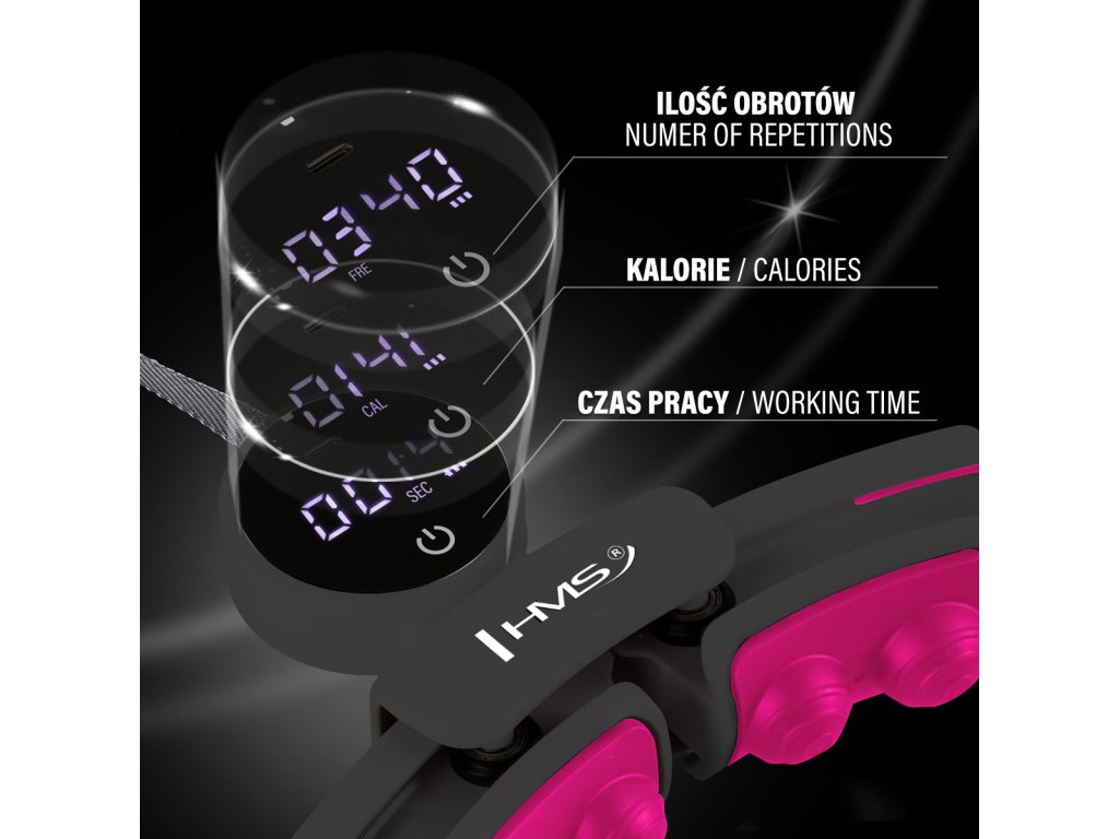 HMS HHM16 je hula hoop obruč s nastavitelným obvodem, masážními magnetickými výstupky, rotujícím závažím a přehledným, dobře čitelným počítadlem.