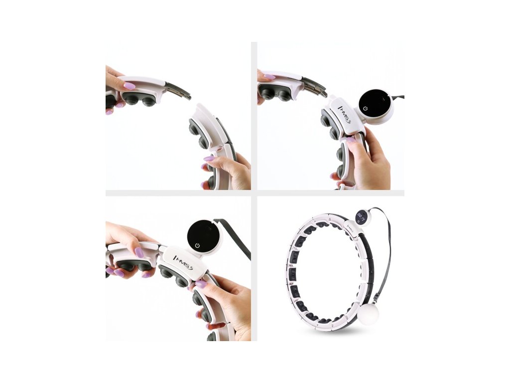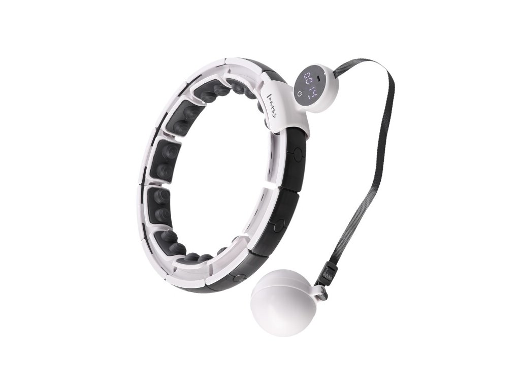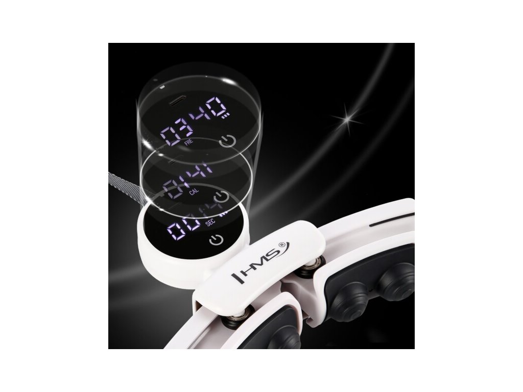HMS HHM16 je hula hoop obruč s nastavitelným obvodem, masážními magnetickými výstupky, rotujícím závažím a přehledným, dobře čitelným počítadlem.