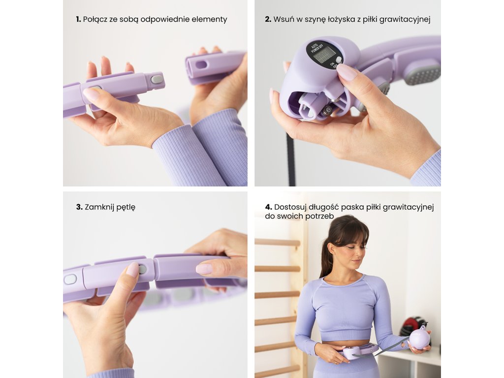 Délka obruče se nastaví podle obvodu pasu tak, aby byla dostatečně volná, ale zároveň aby nepadala přes boky. Po nastavení délky se obruč uzamkne pomocí spojovacího dílu, který je osazen páčkou pro ovládání zámku. Závaží se následně "vrhne" směrem, do kterého budeme kroutit boky a začneme trénink. Obruč HHW09 je z vnitřní strany opatřena masážními výstupky s pružinami, které tlumí vibrace od pohybující se kotvy a zároveň příjemně masírují oblast pasu. Intensitu tréninku ovlivňuje délka provázku a rychlost, jakou kroutíme boky.