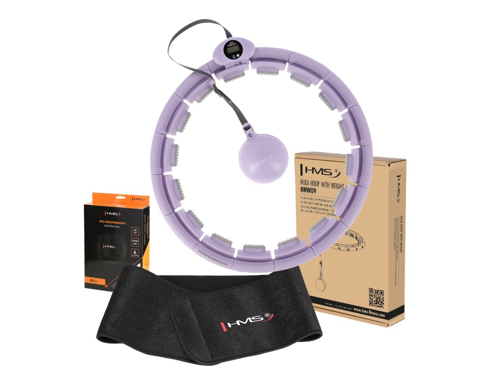Sada masážní hula hoop HMS HHW09 se závažím a počítadlem a zeštíhlujícího pásu BR163 fialová