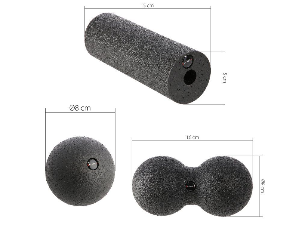 Masážní souprava HMS FSBM07 je dokonalým nástrojem pro automasáž, který obsahuje vše pro udržení zdraví vašeho těla. Malý míček o průměru 8 cm je přesně to, co potřebujete k masáži spoušťových bodů a míst s napjatými fasciemi. Dvojitý míč HMS je ideální pro terapii hlubokých svalových skupin nebo těžko přístupných oblastí těla, jako je krk, hýždě, ramena a hrudník. S mini válečkem si můžete uvolnit předloktí nebo chodidla.