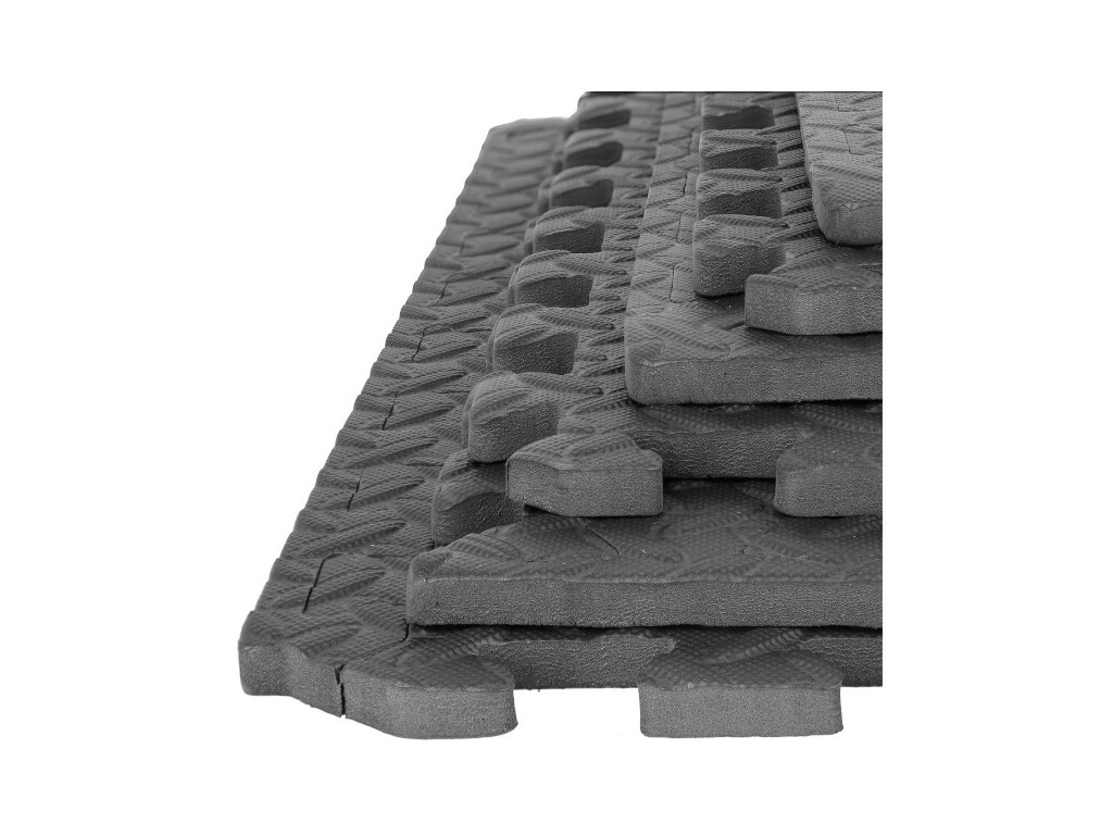Modulární, ochranná podložka HMS MP12 PRO chrání podlahu před poškozením a také tlumí zvuky a vibrace, které vznikají například během odhozů činek a pokládání nářadí. Výchozí balení je určeno pod jeden stroj, nebo lavičku. Díky "puzzle" zámkům po obvodu každého dílu Vám nic nebrání ve vyskládání například celé podlahy. Balení obsahuje 6 čtvercových a 10 zakončovacích dílů pro hladký obvod.