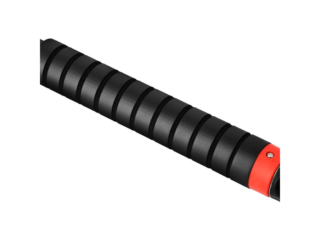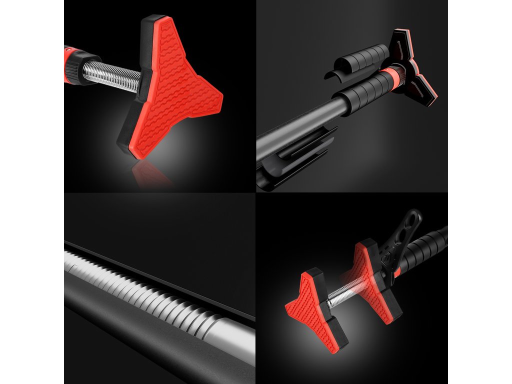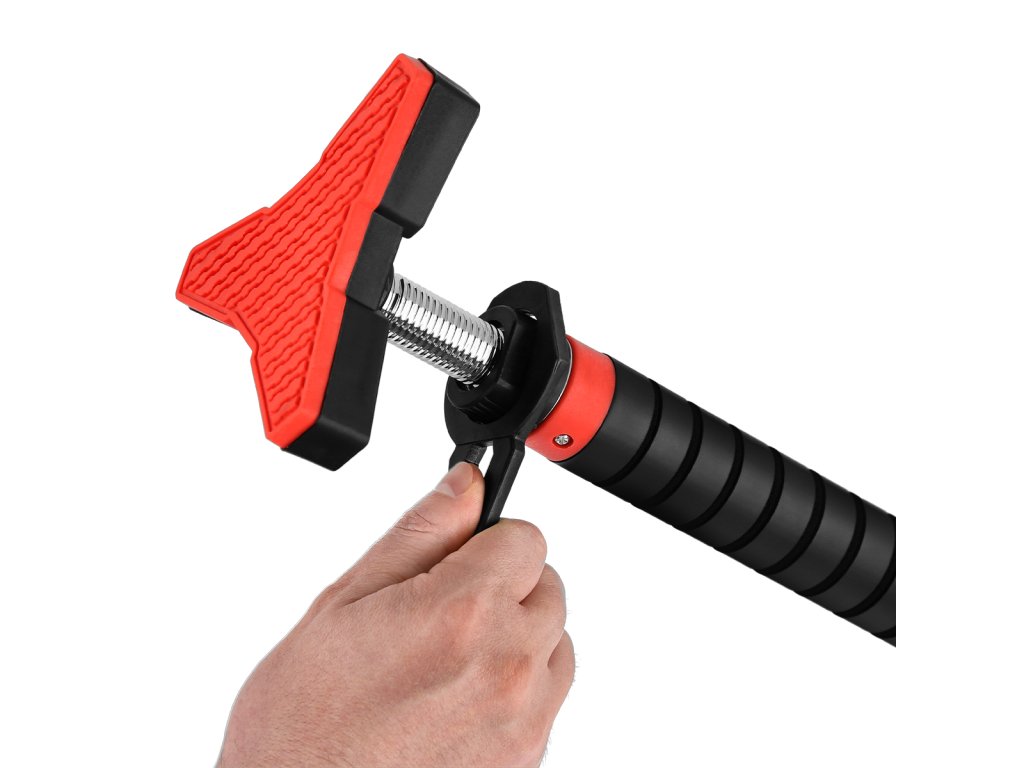 Po vytažení hrazdy z balení se na její konce nasadí koncovky. Hrazdu si na zemi roztáhneme tak, aby byla o několik centimetrů kratší, než je šířka zárubní a dotažením černých matic zajistíme délku hrazdy. DD400 vložíme do zárubní, pomocí dodávané vodováhy ji vyrovnáme a dotáhneme černé matice. Jakmile hrazda drží, tak si z koncovek vytáhneme klíč, který si prodloužíme pomocí nástavce a následně dotáhneme černé matice tak, aby hrazda pevně držela. Nástavec a vodováhu si uschováme pro další použití, klíče nacvakneme zpět do koncovek a můžeme začít s tréninkem.