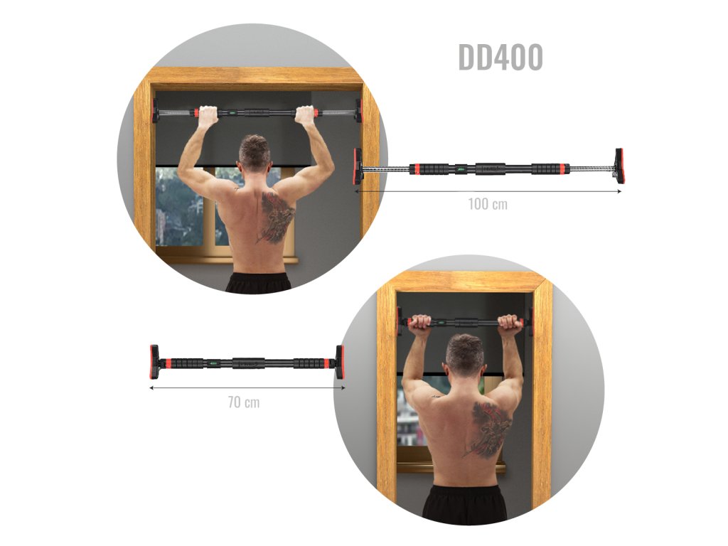 Hrazda DD400 umožňuje provádět širokou škálu cviků. Podle toho, zda je hrazda umístěna ve výšce hlavy, nebo kolen, lze trénovat přítahy, kliky, dipy a tlaky, což vám umožní měnit trénink a dosáhnout požadovaných výsledků. Díky němu zvýšíte svou sílu, vytrvalost a zlepšíte celkovou kondici.