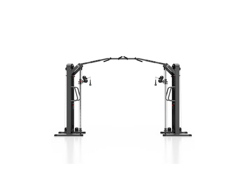Posilovací brána MARBO MP-U204 s nastavitelnou výškou kladek a sestavou hrazd je nekompromisní, profesionální vybavení pro Vaší posilovnu. Pro výrobu byly zvoleny ocelové profily 120x60x3mm a 80x40x3mm, které zaručují nečekanou trvanlivost. Variabilitu použití zajištují výškově nastavitelné kladky. Jejich posun je řešen kluzným pouzdrem s pružinovým kolíkem červené barvy. Na výběr máte z 16-ti nastavení výšky. Na centrálním nosníku se nachází 8 různých madel, jejichž nakombinováním lze dosáhnout až 10-ti různých úchopů. Úchyty jsou opatřeny vrstvou silné pěny pro pohodlný grip. Dva samostatné štosy o hmotnosti 80kg (celkem 160kg) jsou odstupňovány po 5kg. Obě centrální části brány jsou zakrytovány černým plastem a v místě štosů je použito průhledné plexisklo. Stroj je navíc opatřen velikou samolepkou, která instruuje cvičence, jaké cviky jdou na bráně provádět a které skupiny svalů daný cvik posiluje.