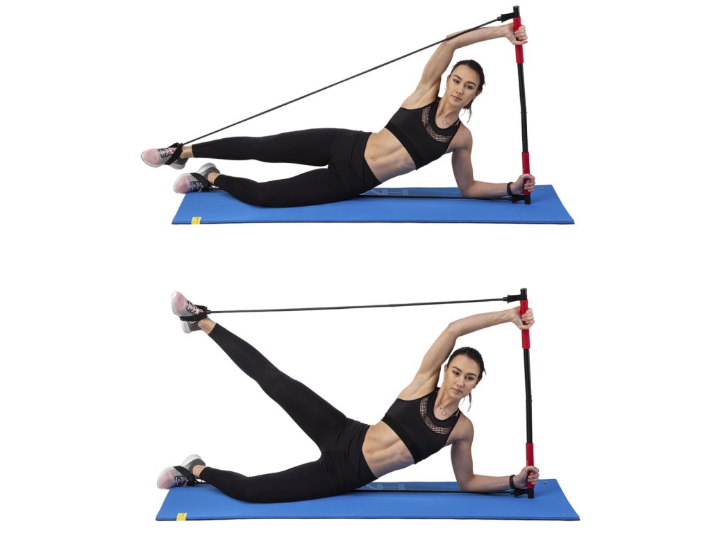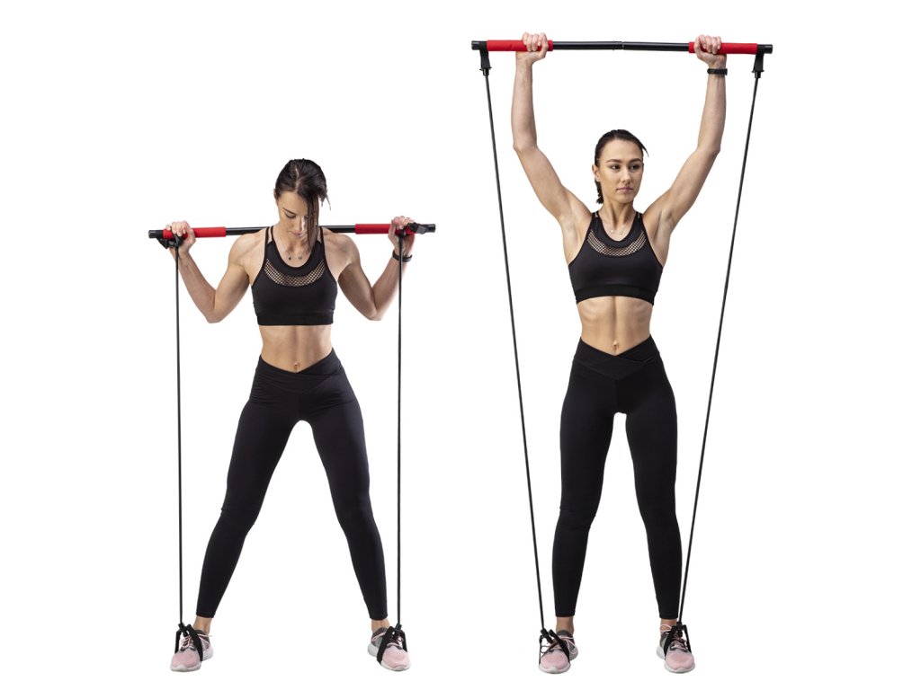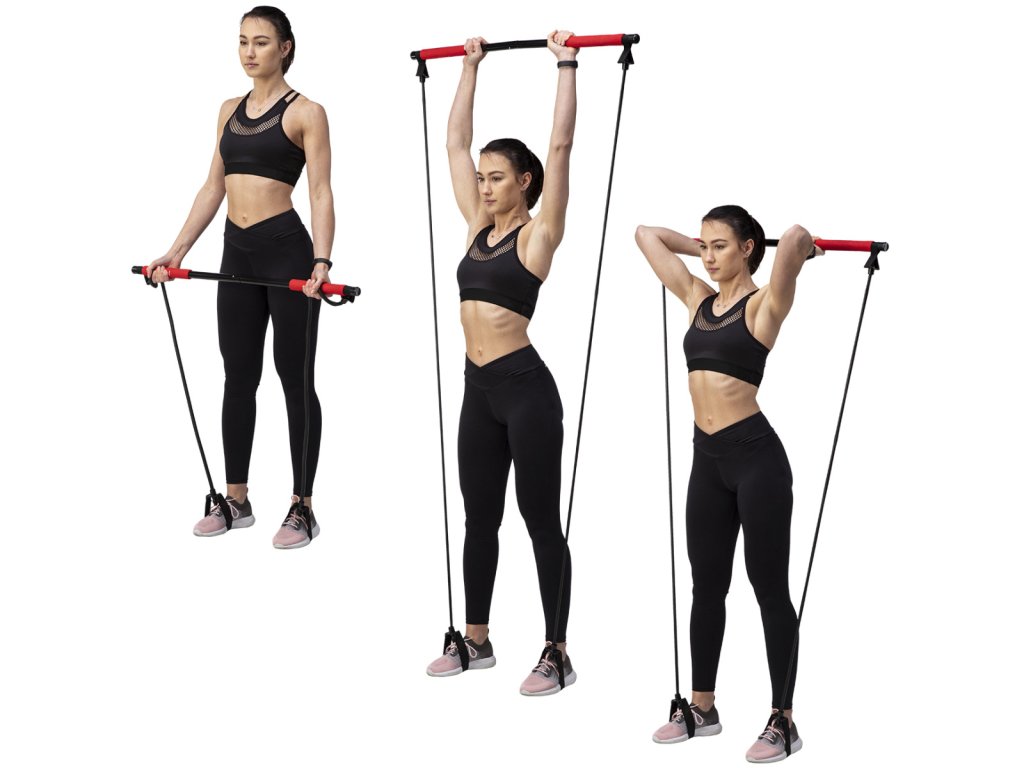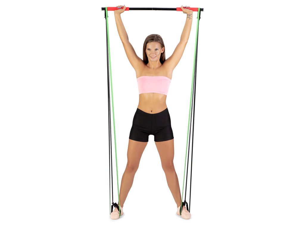 Jako příklad uvadíme cvik, kdy se na tyč postavíte a expadnéry přitahujete směrem k tělu. Případně si rukojeti expandérů nasadíme na chodidal a přitahujeme tyč.