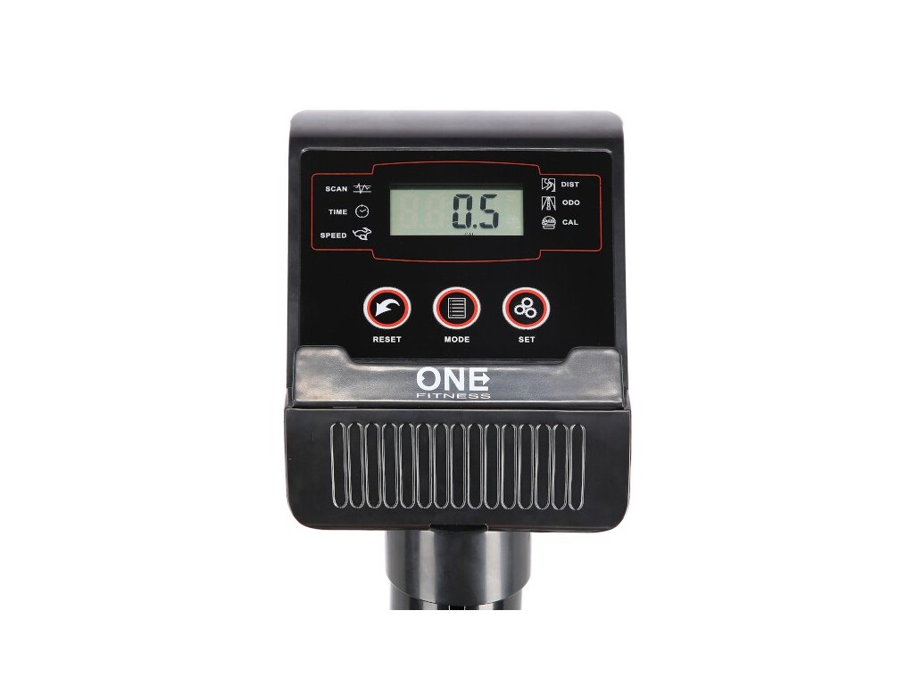 Velmi oblíbený mechanický rotoped ONE Fitness RW3011, jak už název napovídá, má mechanický systém brždění bez zátěžového kola. Přehledný počítač zobrazuje veškeré údaje potřebné pro přehledný trénink - čas tréninku, rychlost, vzdálenost, celková vzdálenost a spálené kalorie. Konzole je vybavena držákem mobilního zařízení, do kterého umístíte tablet nebo telefon a během tréninku můžete sledovat například oblíbený seriál.