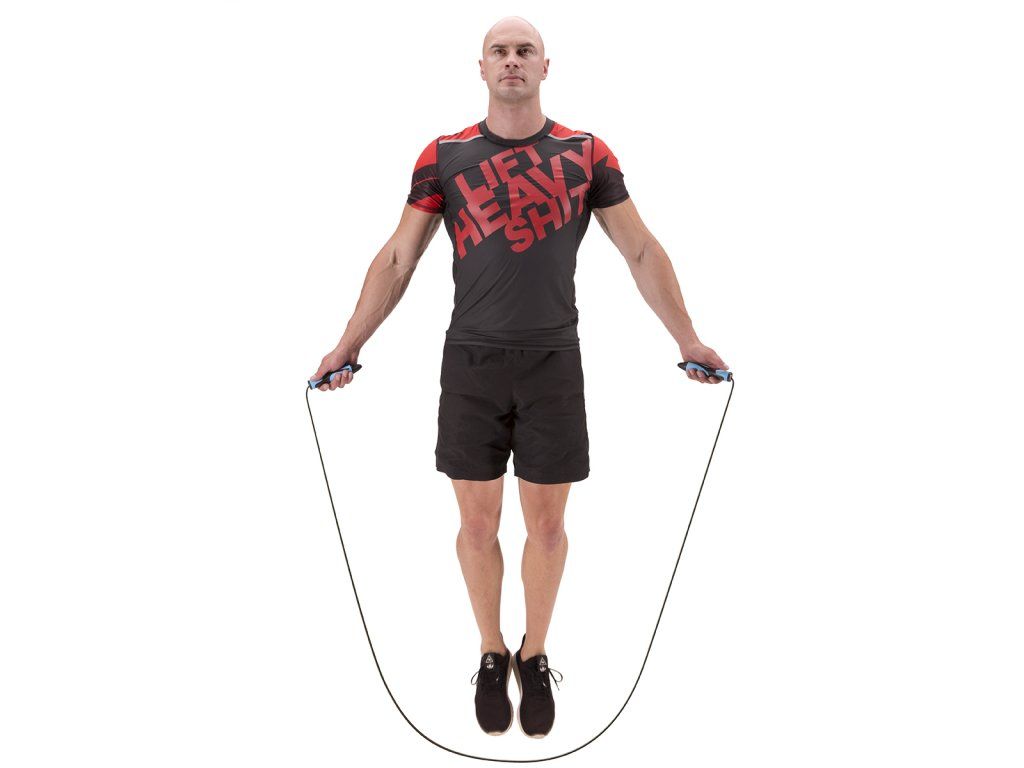 Švihadlo s ergonomickými gumovými rukojetmi z materiálu ABS + TPR, díky čemuž jsou velmi lehké a dobře se drží. Gumové nastavitelné lanko o délce 2,75 m. Švihadlo je ideální pomůckou při formování postavy a kondičním tréninku.