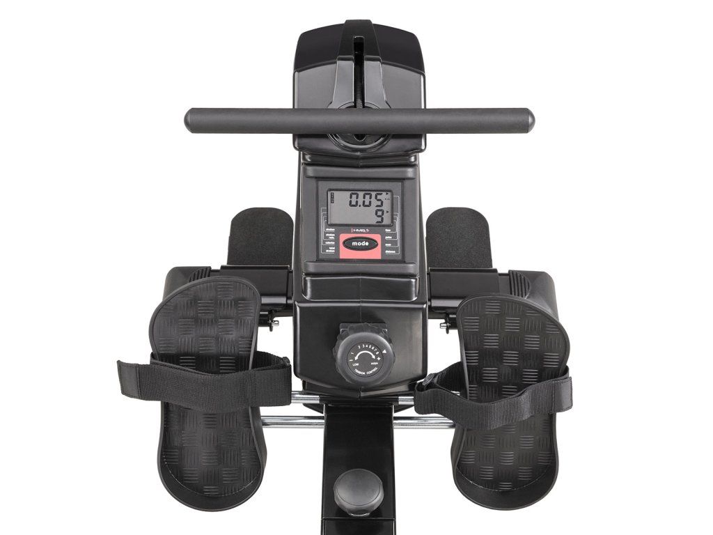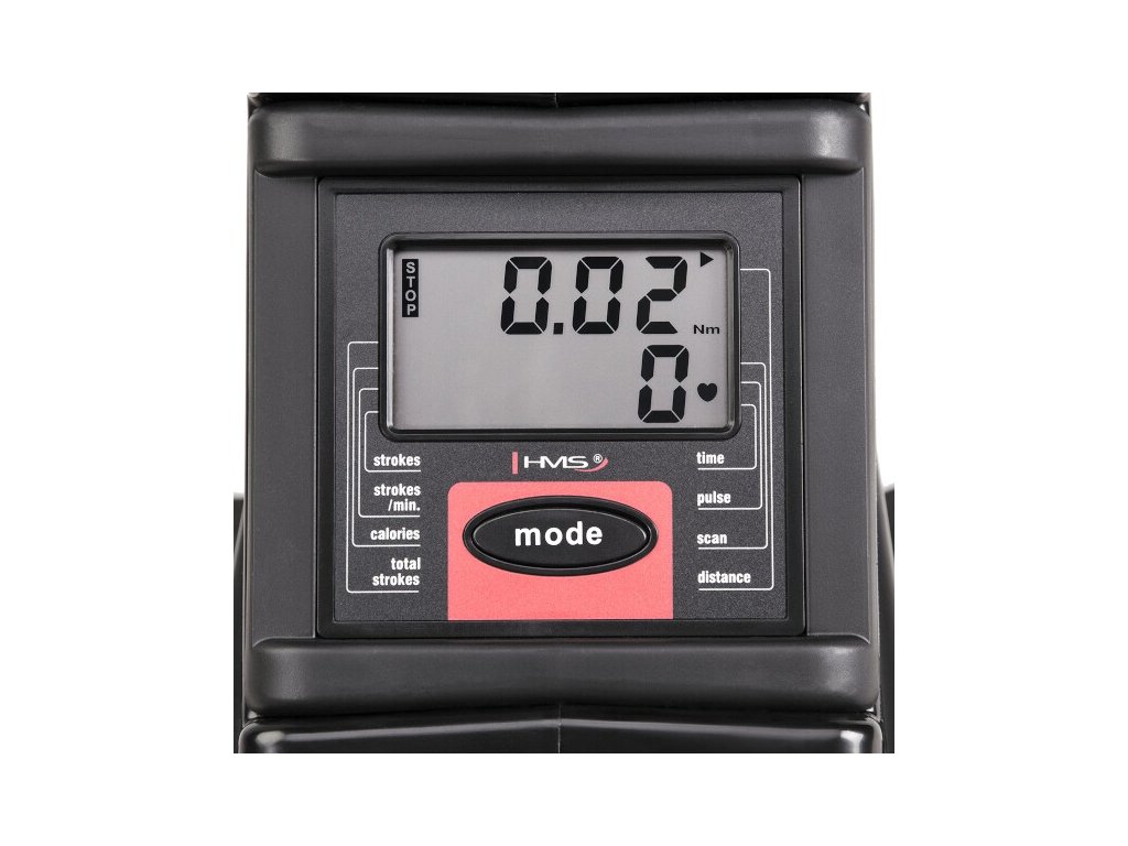 Veškeré údaje pro potřebné vyhodnocování tréninku se zobrazují na LCD displeji o rozměrech 77 x 43 milimetrů. Počítáč měří čas tréninku, vzdálenost, počet přítahů a po připojení telemetrického pásu (není součástí produktu) spálené kalorie a tepovou frekvenci. Pomocí tlačítka "MODE" můžete procházet mezi jednotlivými údaji a nebo lze zvolit funkci "Scan", která v krátkých intervalech postupně zobrazuje všechny měřené hodnoty.