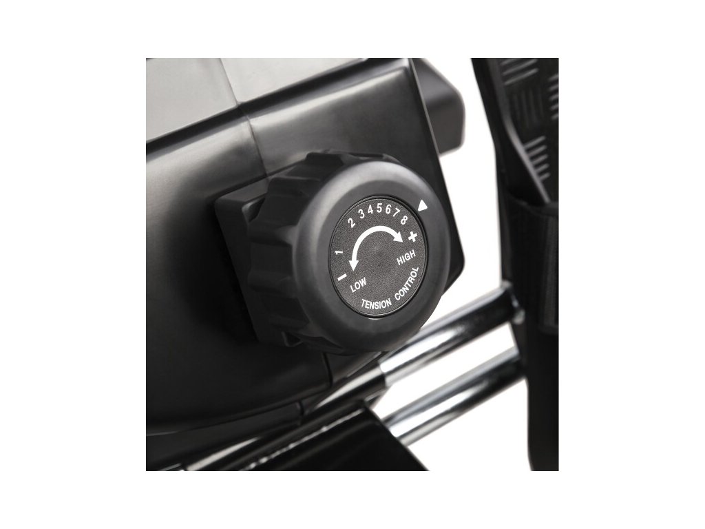 Systém zátěže tvoří naviják s lanem, které se vrací zpět pomocí silné pružiny, které asistuje gumové lano vedené uvnitř kolejnice, po které se pohybuje sedák. Samotná regulace zátěže se provádí v 8-mi stupních pomocí mechanického voliče, pomocí kterého se mění vzdálenost mezi magnetem a 8-mi kilogramovým, zátěžovým kolem, které je spřaženo s navijákem. Tento systém je bezúdržbový a tichý.