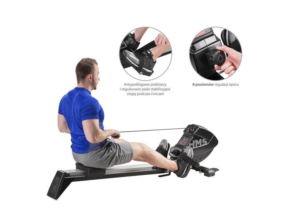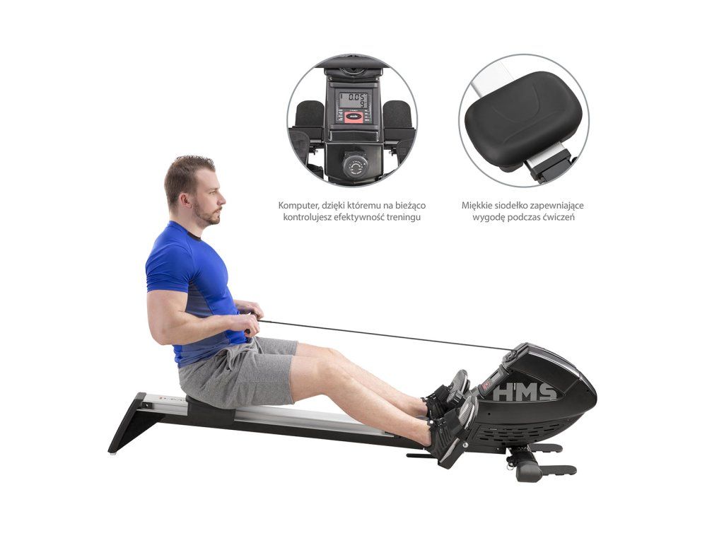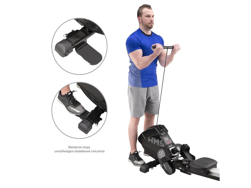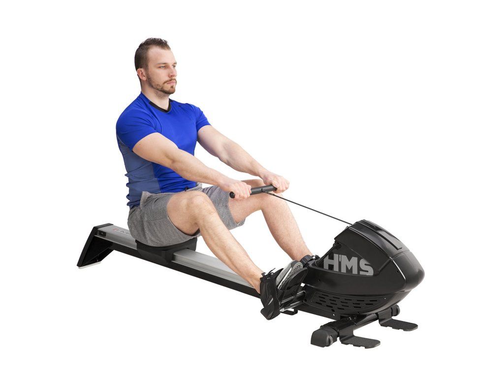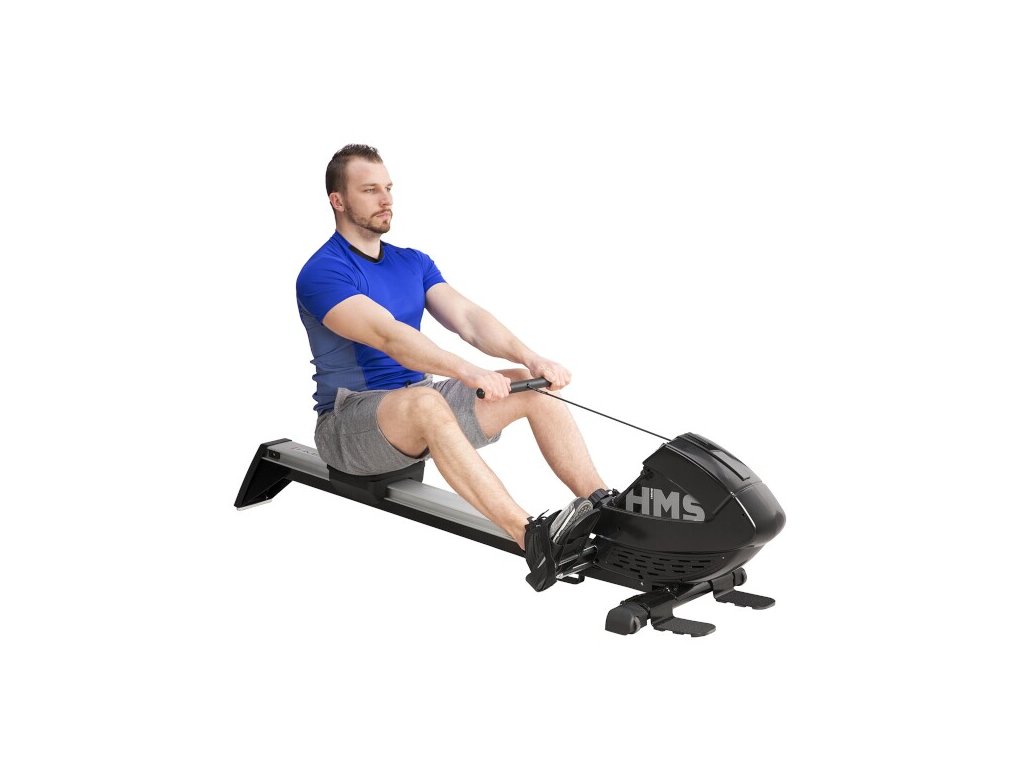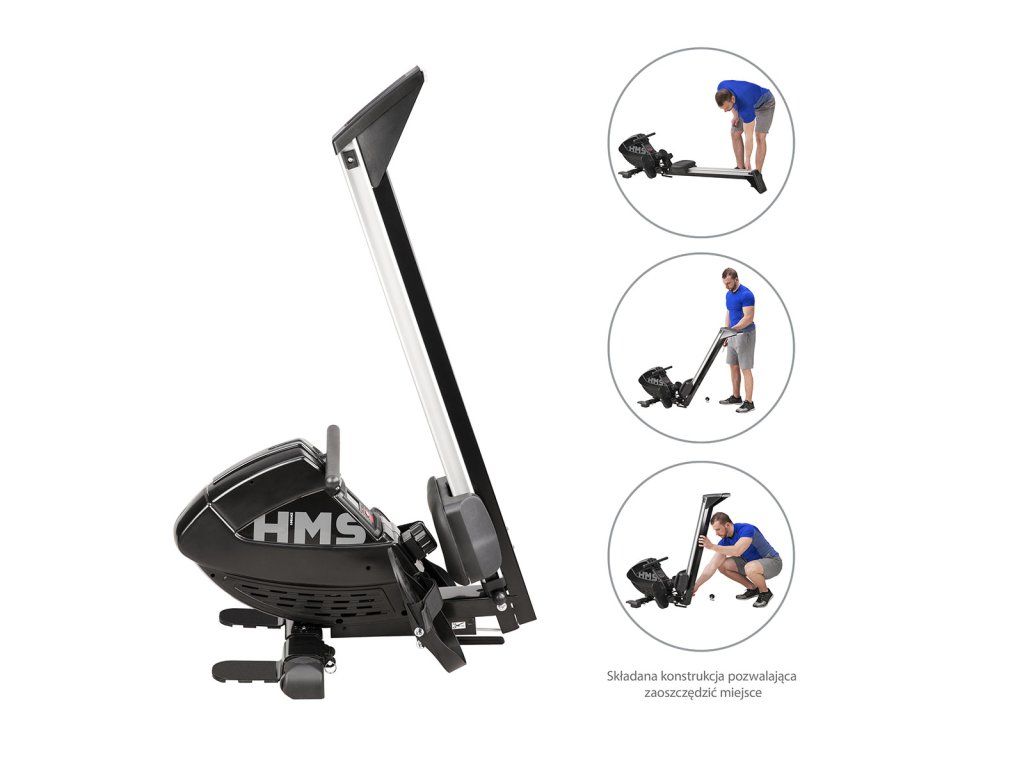 Veslovací trenažér HMS ZM1901 se vyznačuje tichým chodem, snadnou obsluhou a možností sklopení kolejnice.