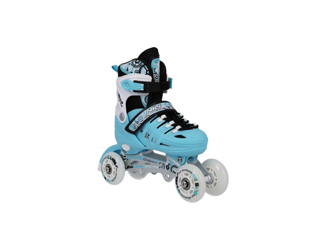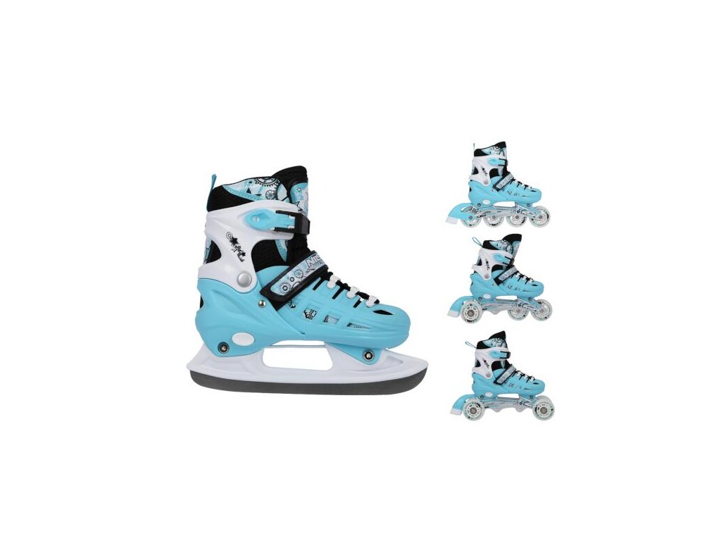 Brusle NILS Extreme NH10905 jsou multifunkční model, který nabízí hned 4 možnosti sestavení podvozku – jako brusle na led, in-line brusle, taneční (quad) brusle a pro nejmenší kombinaci 2+1+1 + nůž na led. Díky tomu jde o univerzální řešení, které se přizpůsobí věku i dovednostem uživatele a poskytne radost z jízdy po celý rok.