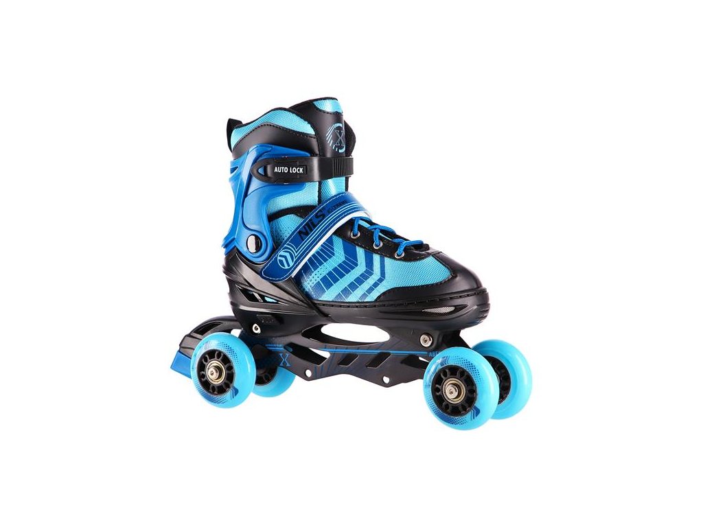 Kolečkové brusle NILS Extreme NH18192A 4v1 jsou určeny k rekreačním projížďkám pro začínající a středně pokročilé bruslaře. Model NH18192A v sobě spojuje poutavý design a kvalitní materiály. Model má vyměnitelný podvozek a brusle tak využijete jak na asfaltu, tak na ledu.