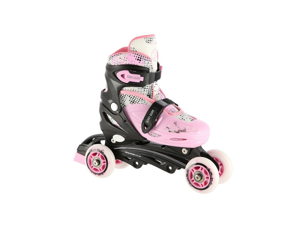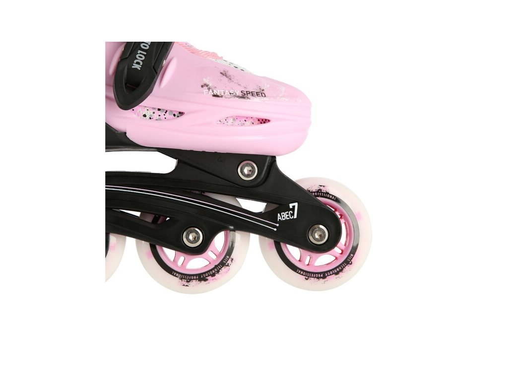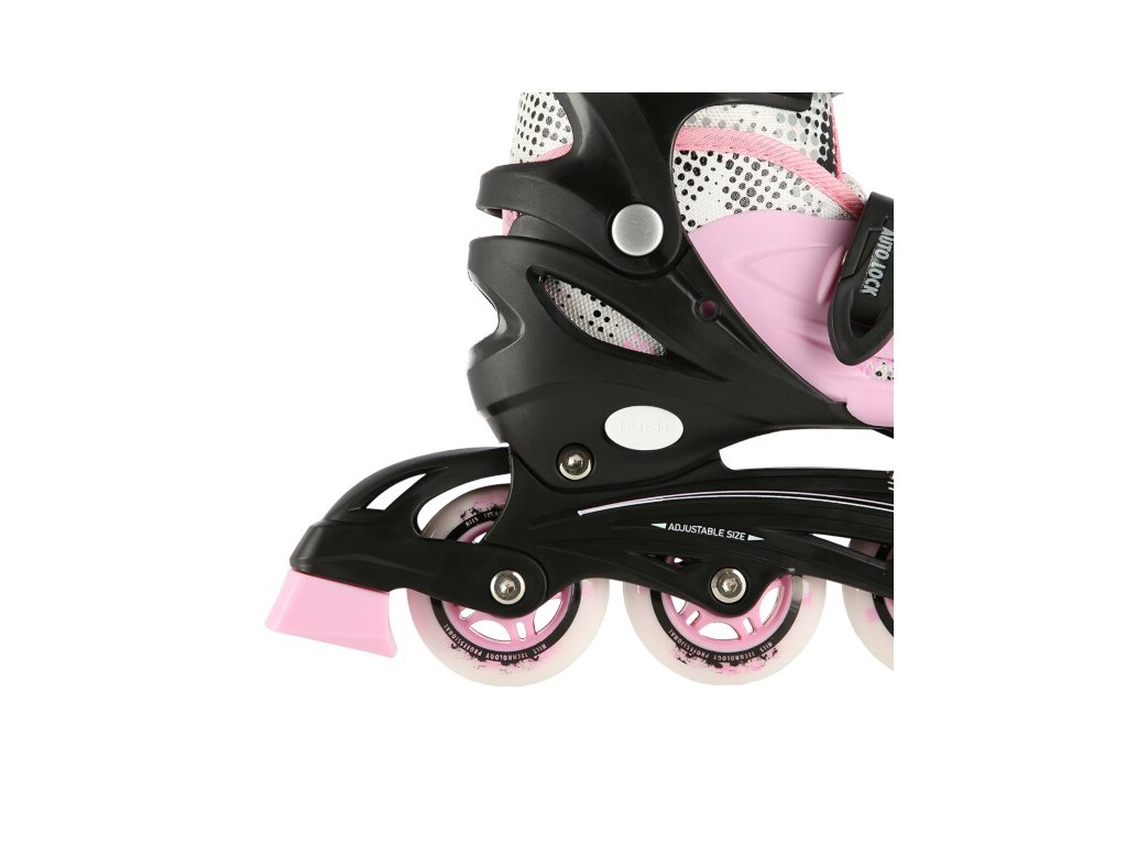 Plastový podvozek je osazen měkkými PU kolečky s ložisky ABEC7 pro svižnou jízdu. Vnější bota je pomocí stisku tlačítka nastavitelná do čtyř velikostí, toto řešení umožňuje precizní přizpůsobení velikosti podle aktuálních potřeb anebo se používá jako "rostoucí bota", která "roste" spolu s nohou dítěte.