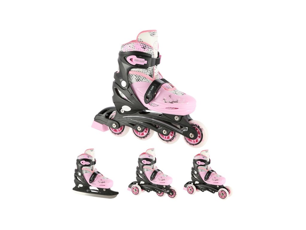NILS Extreme NH18331 jsou kolečkové brusle 4v1 s variabilním podvozkem a s vyměnitelnými nožy na led, které jsou určeny pro začínající a středně pokročilé uživatele.