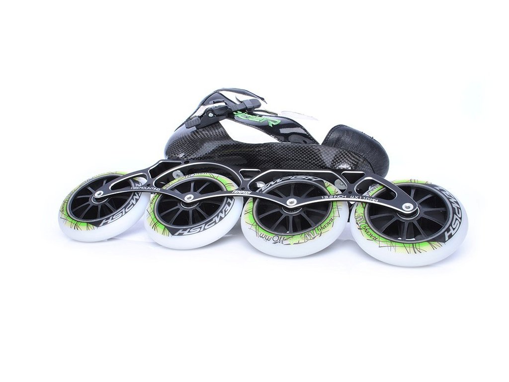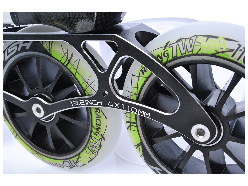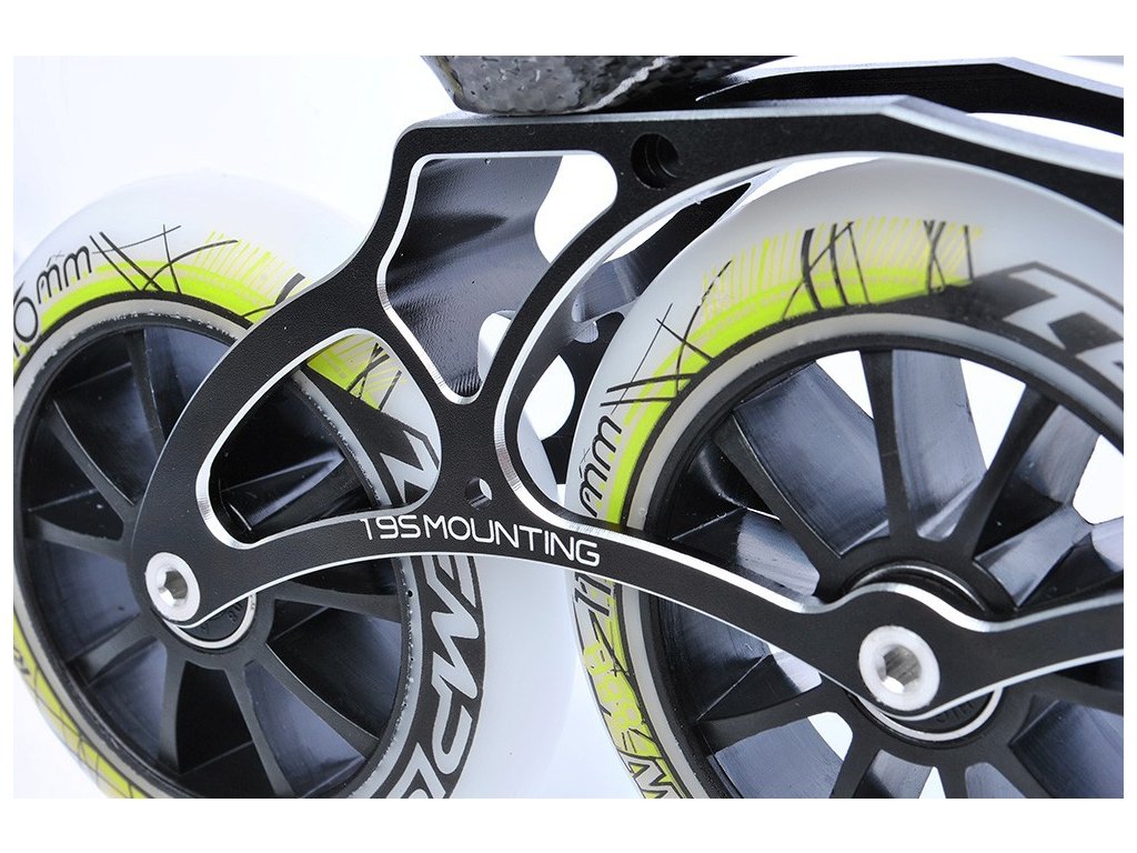 | Podvozek in-line: | WEB- super odlehčený, monokonstrukční. Snížené osazení k botě, slitina AL 7000,hmotnost 188g, připevněn centrálními šrouby s nastavitelnou pozicí, povrchová úprava HI-POLISH ALUX |