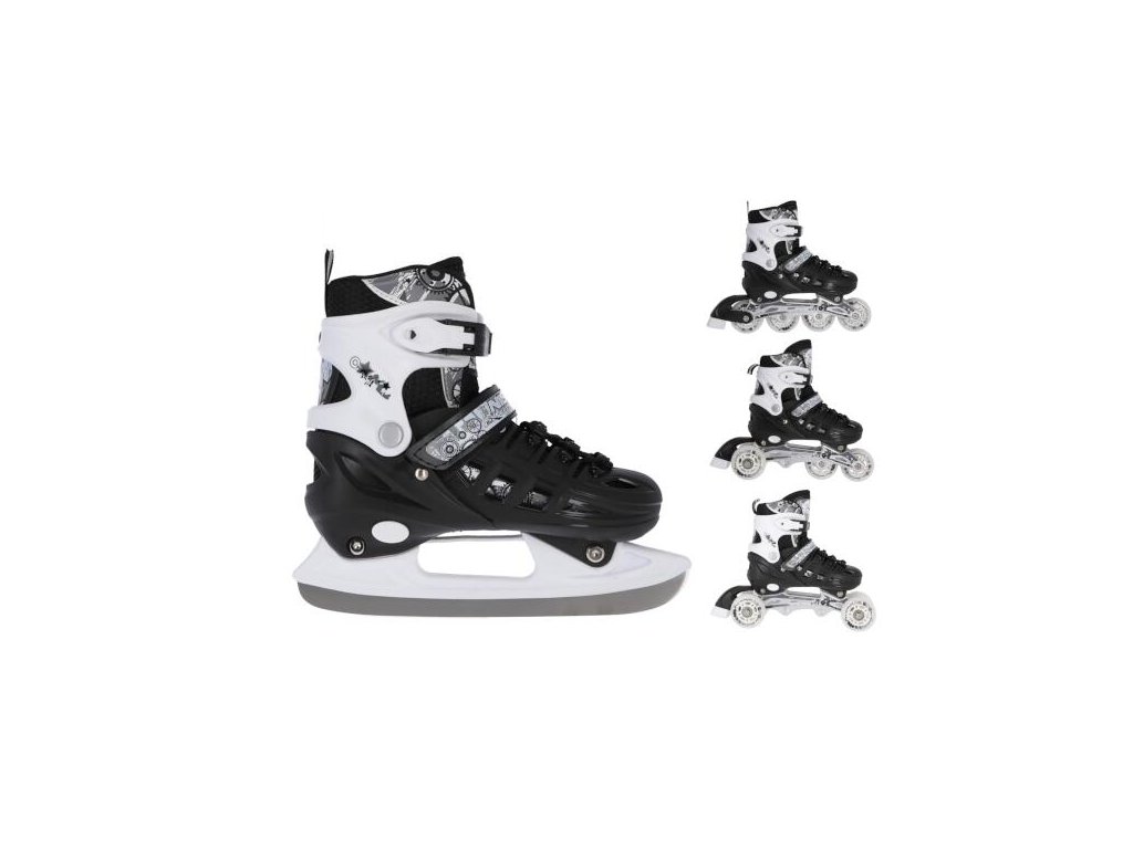 Brusle NILS Extreme NH10905 jsou multifunkční model, který nabízí hned 4 možnosti sestavení podvozku – jako brusle na led, in-line brusle, taneční (quad) brusle a pro nejmenší kombinaci 2+1+1 + nůž na led. Díky tomu jde o univerzální řešení, které se přizpůsobí věku i dovednostem uživatele a poskytne radost z jízdy po celý rok.