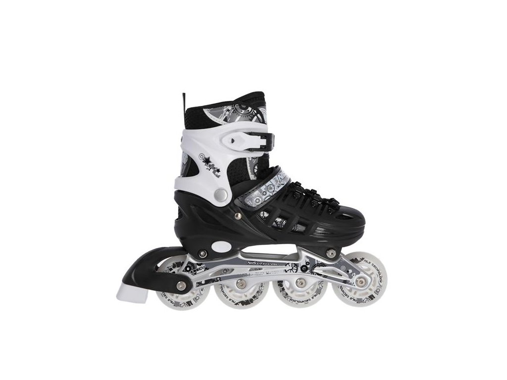 Model je vybaven praktickým systémem čtyřstupňové regulace velikosti – jednoduchým stisknutím tlačítka pod patou lze posunout špičku boty a nastavit jednu ze čtyř velikostí. Tento systém umožňuje, aby brusle rostly spolu s dítětem a současně snižuje celkové náklady na vybavení.