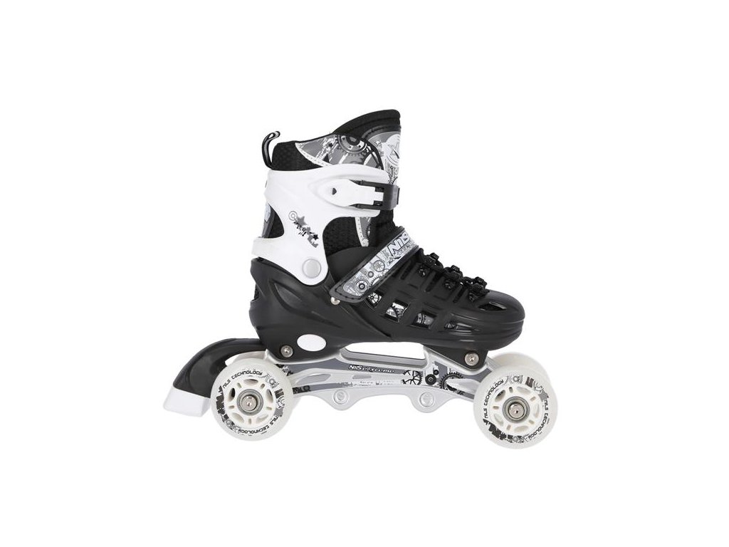 Brusle NILS Extreme NH10905 jsou multifunkční model, který nabízí hned 4 možnosti sestavení podvozku – jako brusle na led, in-line brusle, taneční (quad) brusle a pro nejmenší kombinaci 2+1+1 + nůž na led. Díky tomu jde o univerzální řešení, které se přizpůsobí věku i dovednostem uživatele a poskytne radost z jízdy po celý rok.