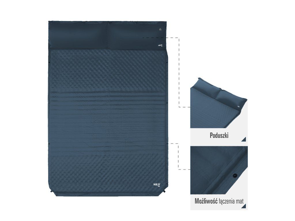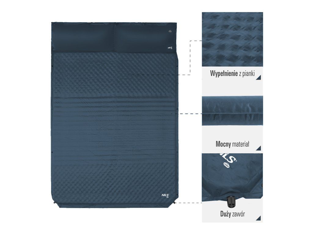 NC4060 NILS Camp je široká samonafukovací karimatka pro dvě osoby, která představuje ideální řešení pro kempování, spaní ve stanu nebo relaxaci na pláži. Nabízí kombinaci pohodlí, jednoduchého použití a praktických detailů pro každou outdoorovou výpravu.