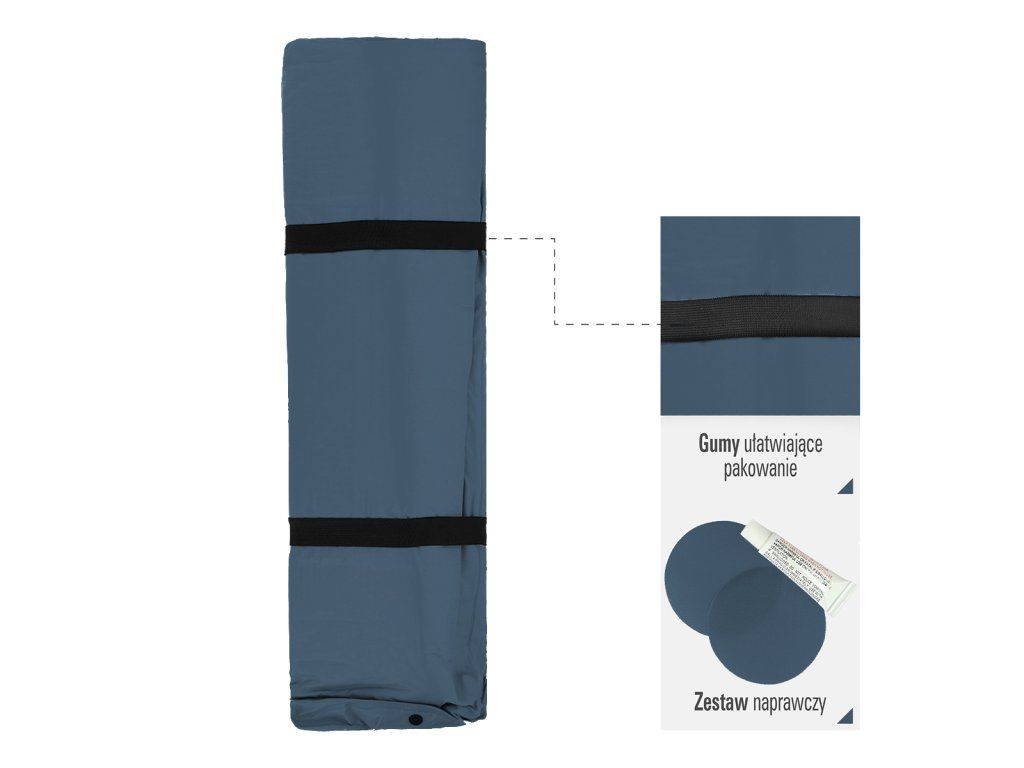 Karimatka je vyrobena z kvalitních materiálů, které zajišťují dlouhou životnost i při častém používání. V balení najdete také opravnou sadu, která umožňuje rychlé řešení drobných poškození.