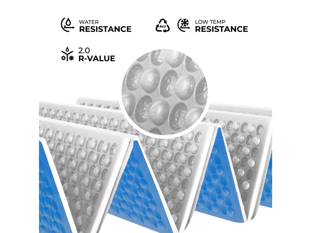 - Materiál: XPE (chemicky zesíťovaná polyetylenová pěna), hliník
