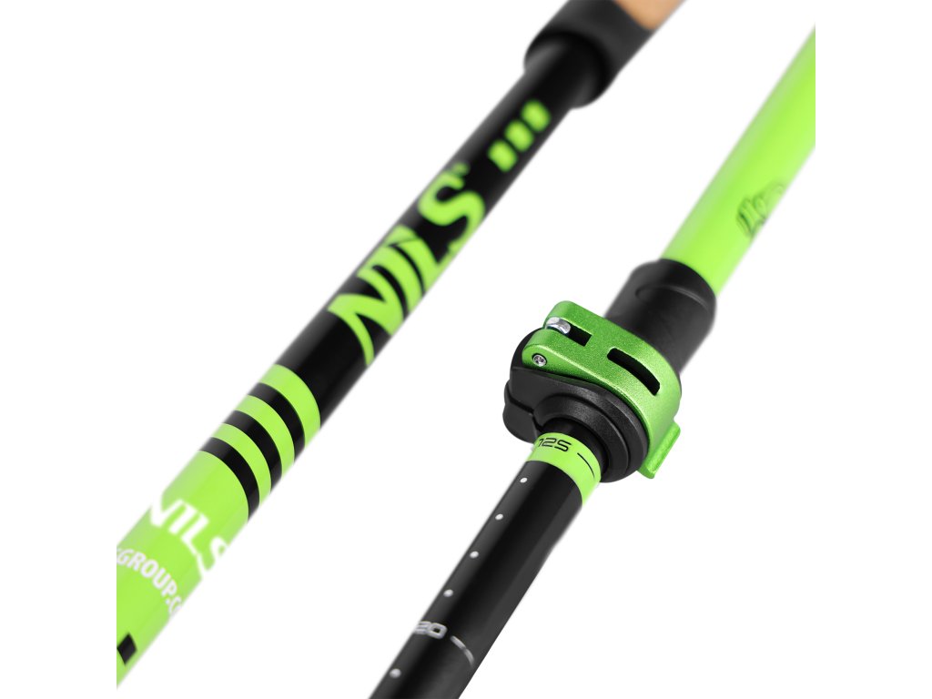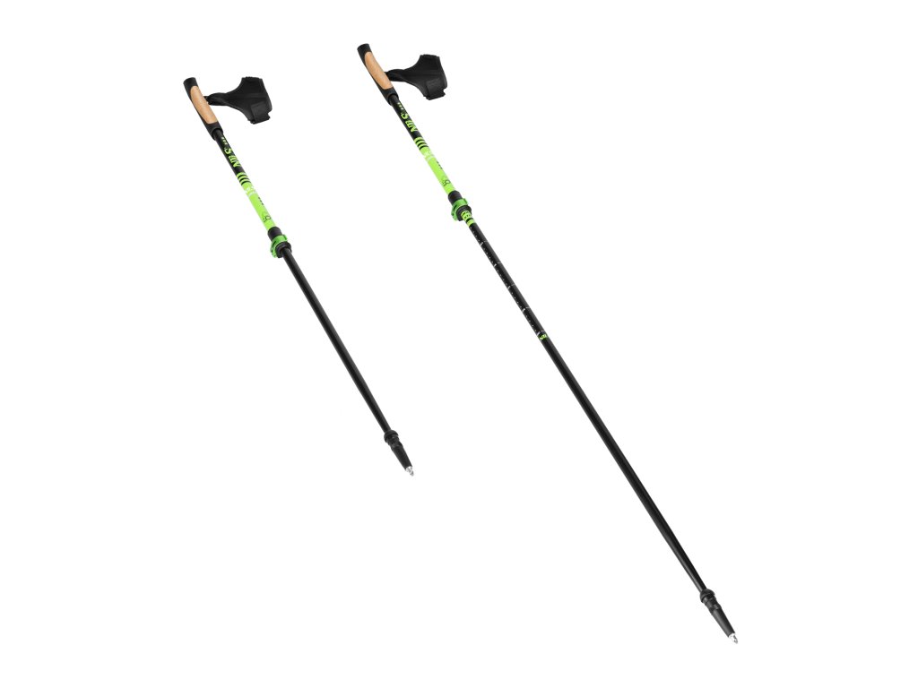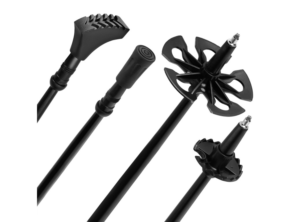 Díky hliníkovým rychloupínacím zámkům lze hole rychle a pohodlně nastavit podle individuálních preferencí. Toto řešení zajišťuje stabilitu a pevnost, čímž eliminuje riziko samovolného zkracování během chůze.