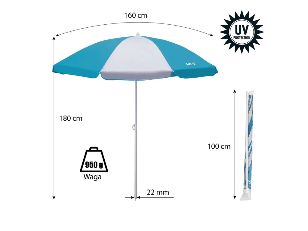 Slunečník NILS Camp NC7813 160 cm sv.modrý