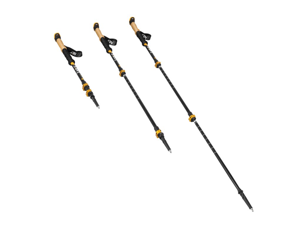 Díky teleskopickému nastavení délky a robustním uzamykacím svorek může uživatel přizpůsobit hole svým individuálním potřebám a typu terénu.