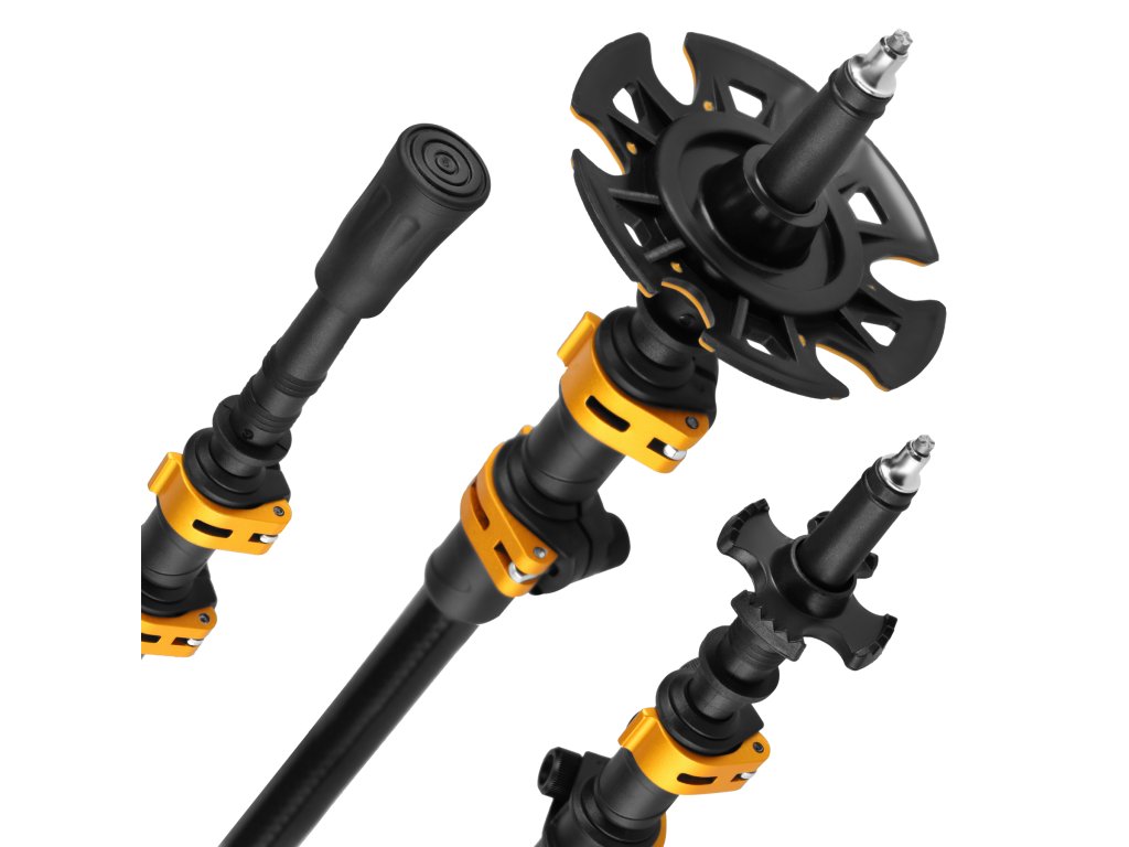 - Systém svorek: rychlé a bezpečné nastavení délky pro plnou stabilitu holí.