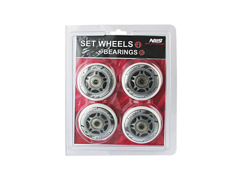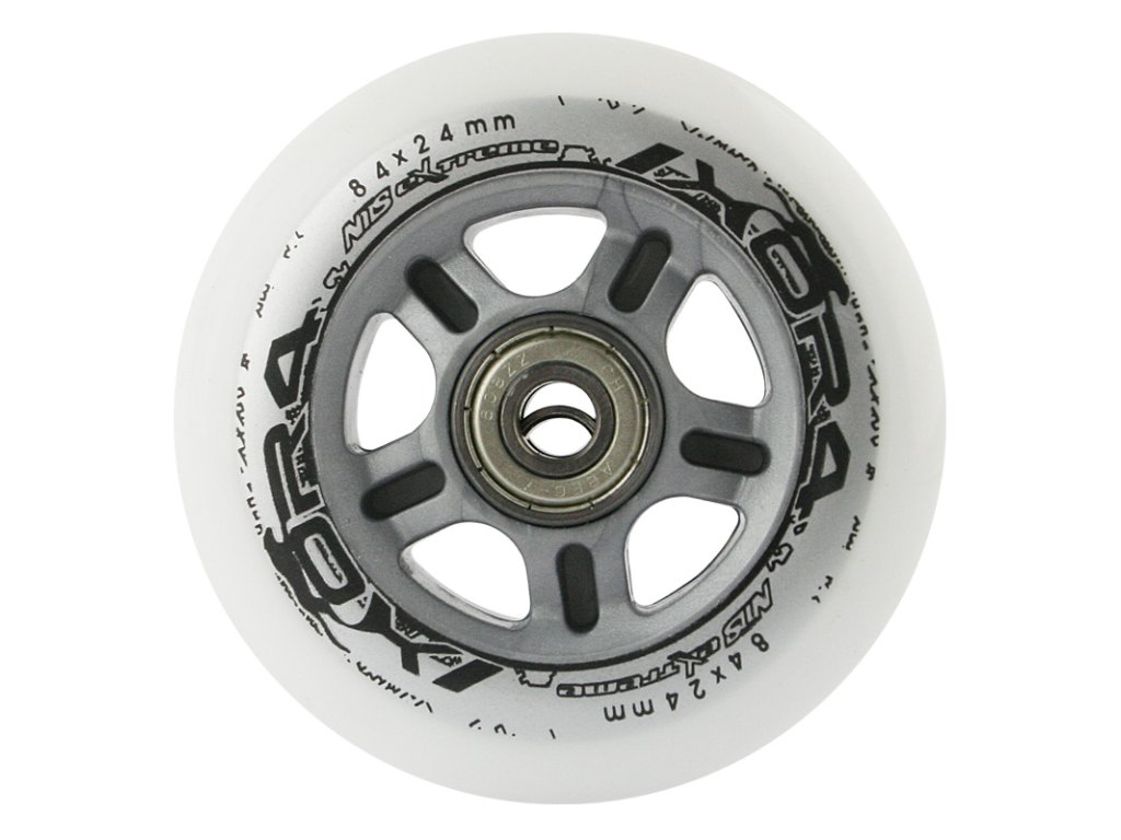 Sestava bílých PU koleček 84x24 + ložiska ABEC7 NILS EXTREME