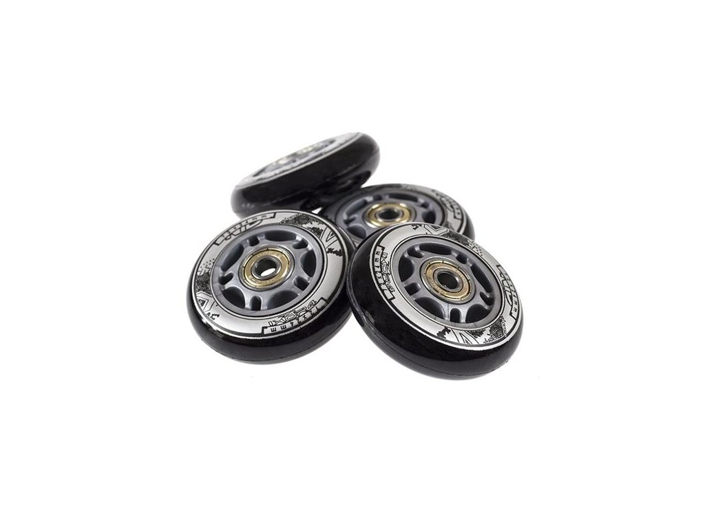 Náhradní sada koleček velikosti 64x24 mm černé barvy a tvrdostí 82 A s ložisky ABEC 9.