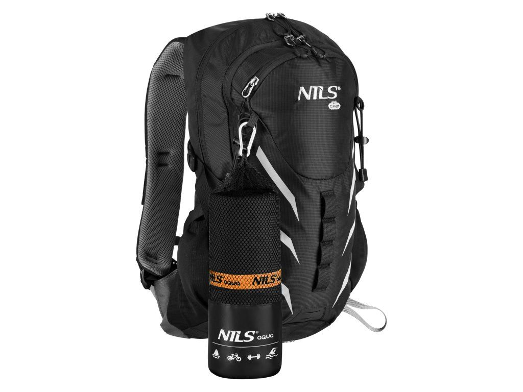 Ručník z mikrovlákna NILS aqua NAR12 černý/oranžový