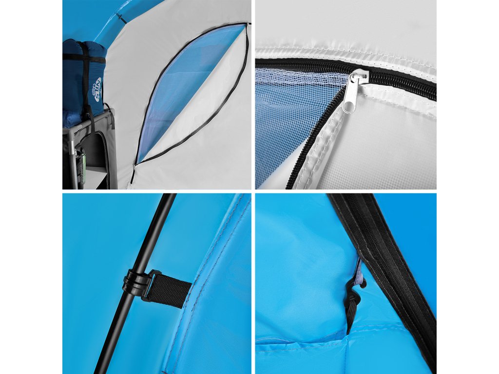 Voyager lze rychle postavit za pomocí tří skládacích, laminátových tyčí. Následně se vypne pomocí 6-ti napínacích šnůr a ocelových kolíků. Vše dostanete zabaleno v transportní tašce pro pohodlné přenášení.