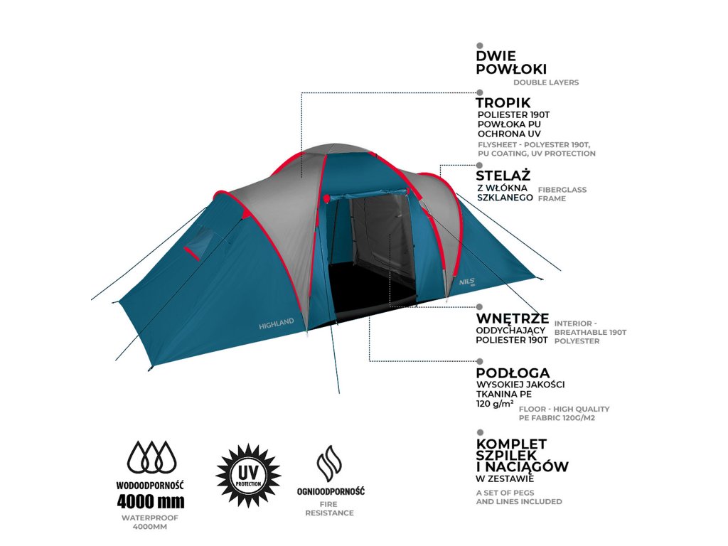 Rodinný stan NILS Camp NC6031 Highland modrý/světle šedý