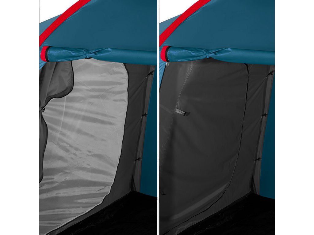 Highland nabízí dvě samostatné ložnice, každou pro tři osoby, a velkou předsíň o rozměrech 210 × 210 × 200 cm. To je dostatek prostoru k pohodlnému pobytu uvnitř stanu – ať už odpočíváte, nebo se schováváte před deštěm.