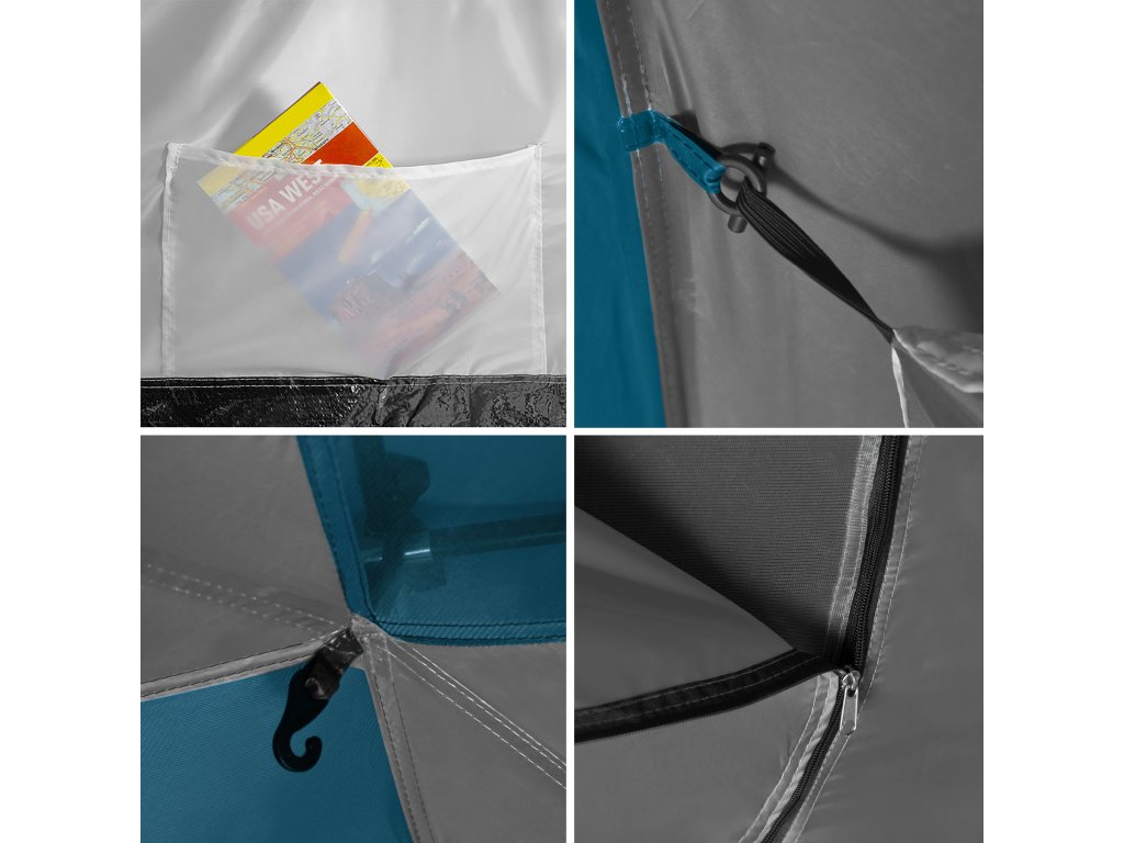 Čtyři vnitřní kapsy umožňují udržet pořádek a mít po ruce nezbytné věci. Háček pod stropem v každé ložnici slouží k zavěšení svítilny. A speciální podlaha v předsíni s odnímatelným prahem účinně zabraňuje pronikání písku, prachu a bláta dovnitř, zároveň usnadňuje čištění interiéru.