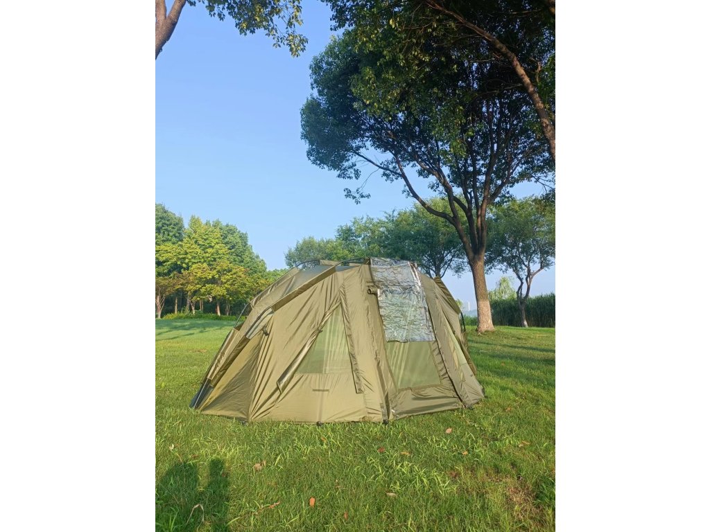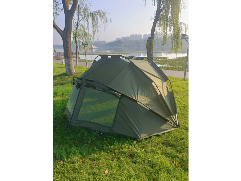Praktický a prostorný bivak ze spolehlivého voděodolného 210D Materiálu s vodním sloupcem až 3500MM. Celková konstrukce je tvořena z pevných ALU trubek, které do sebe jednoduše zapadnou a zajišťují bezpečný pobyt v bivaku. Odjímatelná podlážka je samozřejmostí.