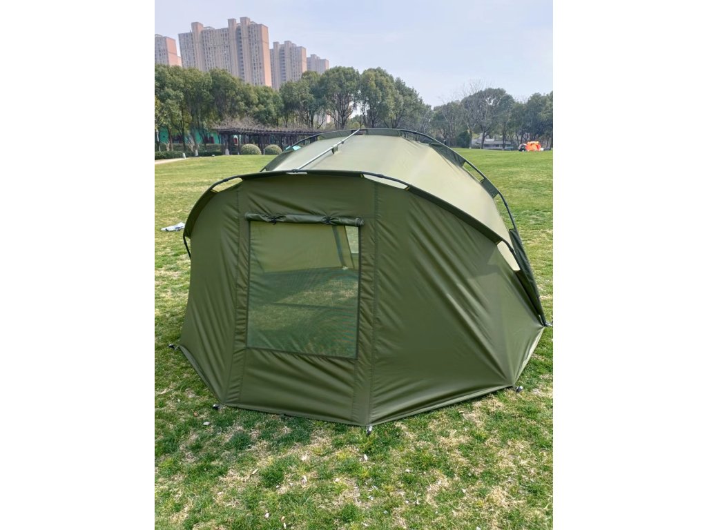 Velmi prostorný bivak ze spolehlivého voděodolného 210D Materiálu s vodním sloupcem až 3500MM. Celková konstrukce je tvořena z ALU trubek, které do sebe jednoduše zapadnou a tvoří tak pevnou a spolehlivou konstrukci. Odjímatelná podlaha je samozřejmostí. Celý bivak má vychytaný ventilační systém, který zajišťuje cirkulaci kyslíku a odvedení případné vlhkosti z bivaku. Povrch bivaku je připraven odolat všem venkovním podmínkám. Spolehlivě se pod něj tedy schováte při dešti, ale i nepříjemném větru nebo slunci. V balení také transportní vak pro snadný přenos bivaku.