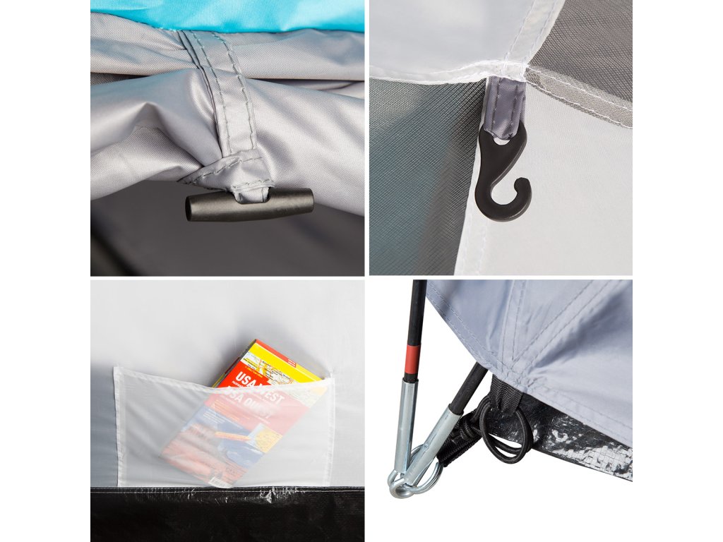 - Materiál: polyester 190T, polyuretanový zátěr, sklolaminát, ocel