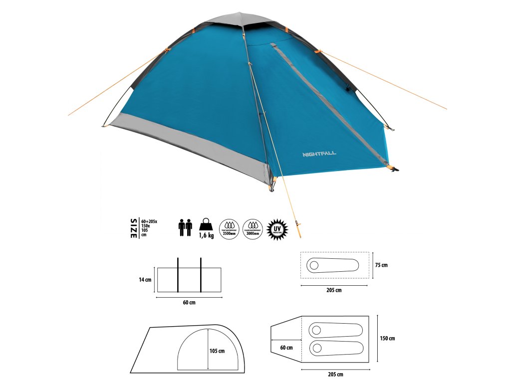 NILS Camp NC6033 Nightfall je 2 osobový, turistický stan, který oceníte při toulkách přírodou, spaní pod "širákem" a nebo při krátkém pobytu v kempu. Stan Nightfall je jenoplášťový a skládá se z malé předsíňky a ložnice.