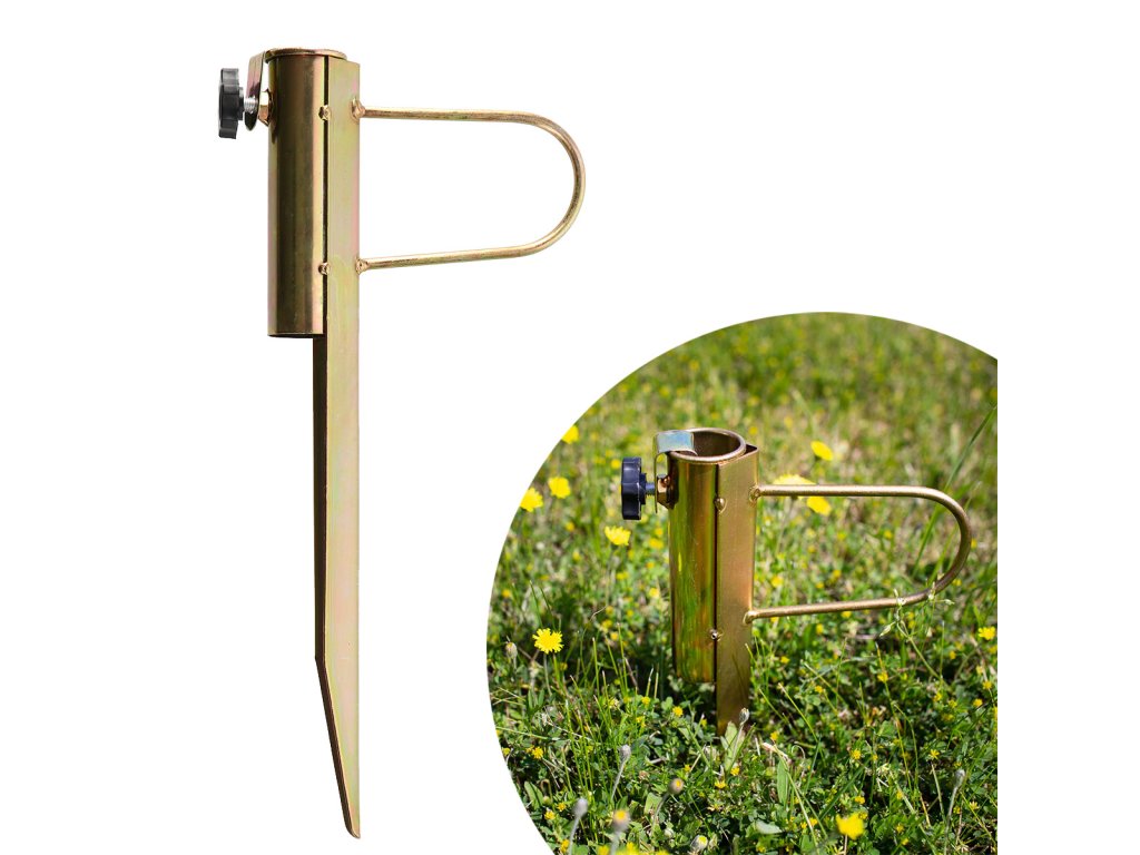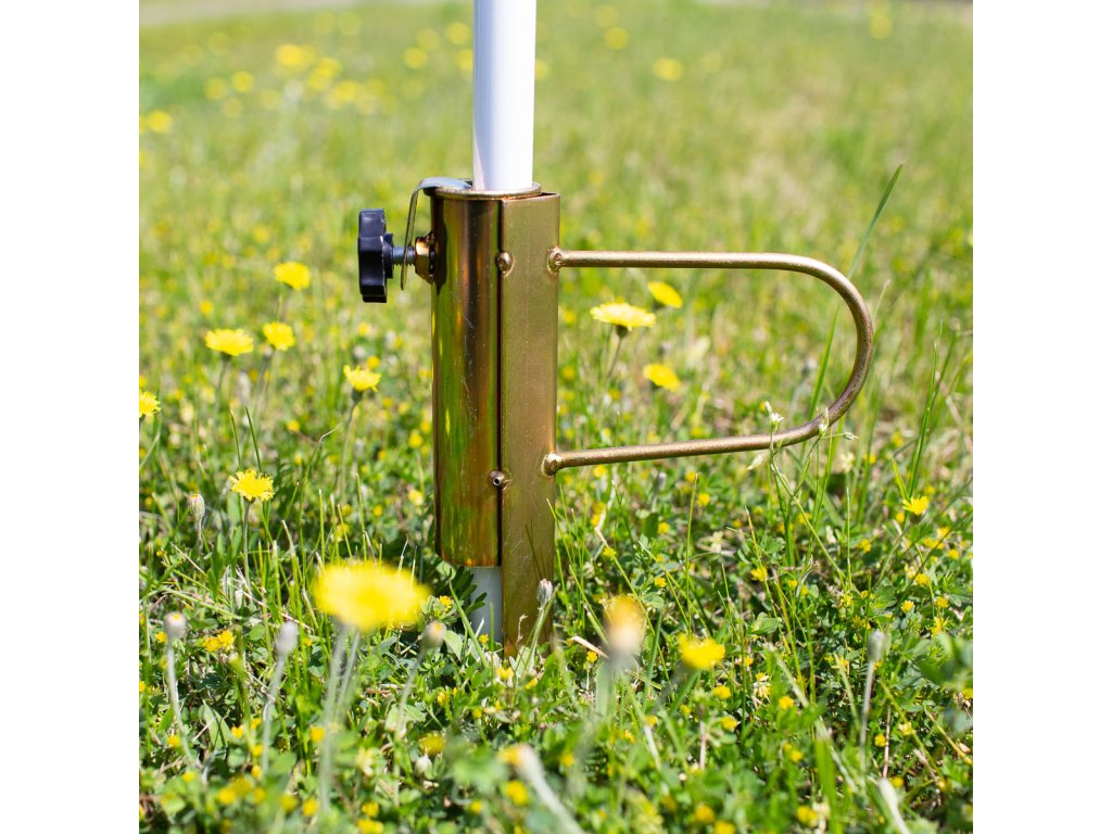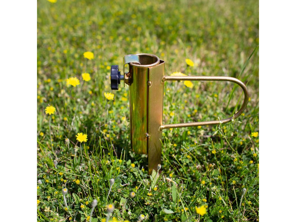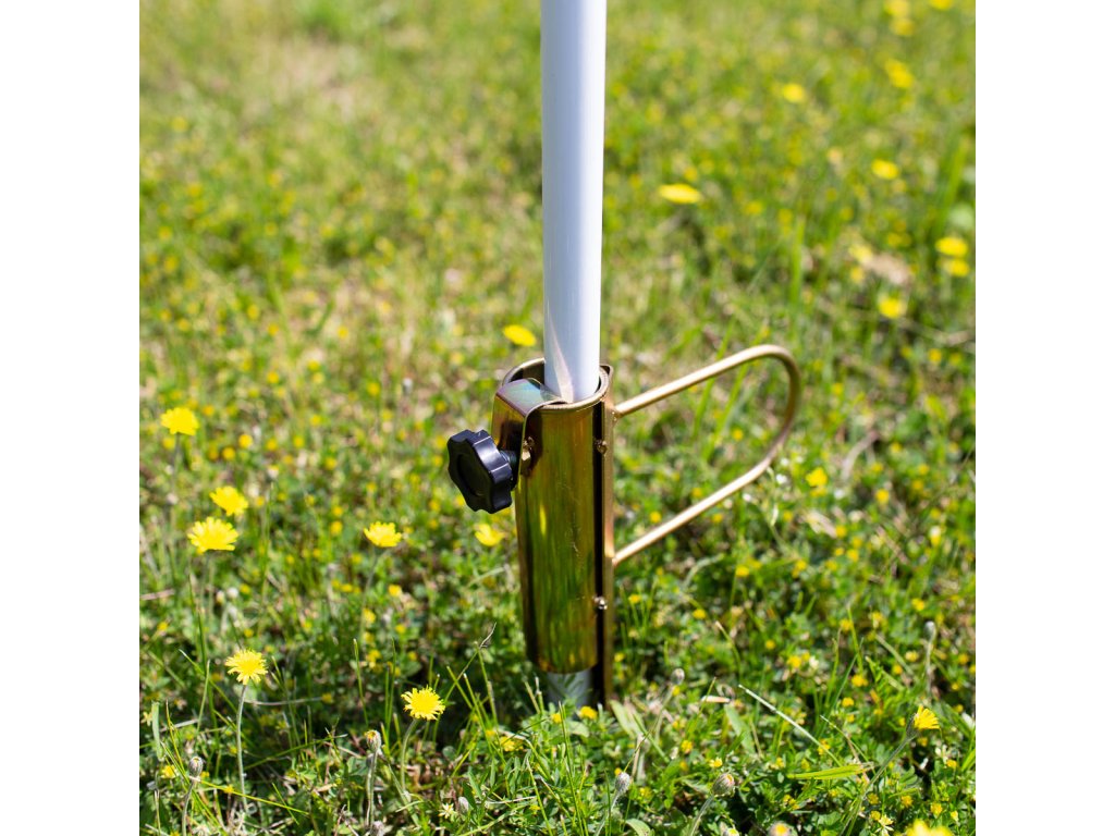 Ocelový držák NC7817 je ideálním doplňkem pro stabilní upevnění slunečníku na zahradě, nebo na travnaté ploše u jezera nebo rybníku. Trn se zapíchne do hloubky 25 centimetrů, do objímky v horní části držáku se zasune tyč slunečníku tak, aby byla zapřena o podloží apomocí šroubu s ergonomickou hlavou se zajistí proti pohybu. Takto uchycený slunečník je stabilní, neotáčí se a odolá i větru.