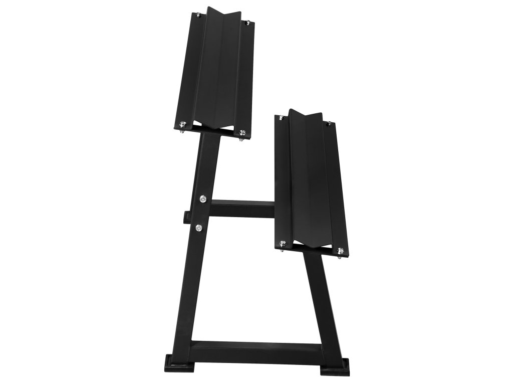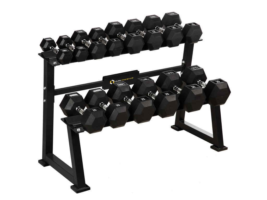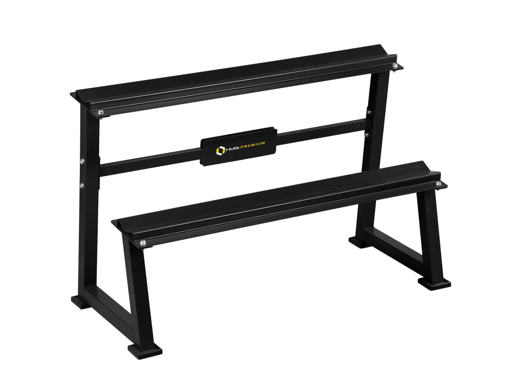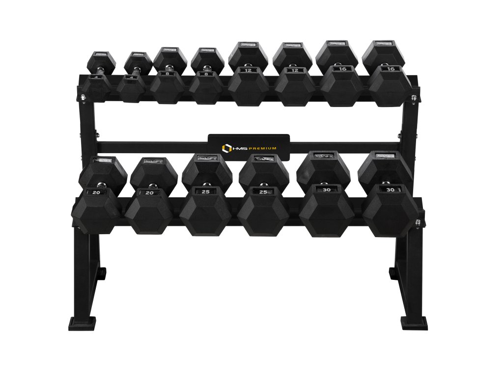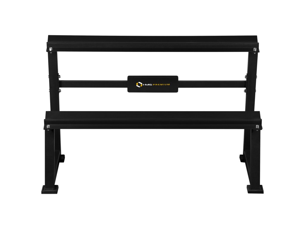 Stojan na jednoruční činky HMS Premium STR20 je ideálním pomocníkem pro uložení až 7-mi párů činek. Kvalitní, ocelová konstrukce ja vyrobena z profilu 50 x 50 mm, díky tomu unese zatížení až 500 kilogramů. Stojan STR20 má dvě "kolejnice" o rozměru 122 x 22 centimetrů, které jsou umístěny nad sebou pro snadnou orientaci mezi odkládaným náčiním. Čtyři nohy stojanu jsou opatřeny gumovými patkami, které chrání podlahu před jejím poškozením.