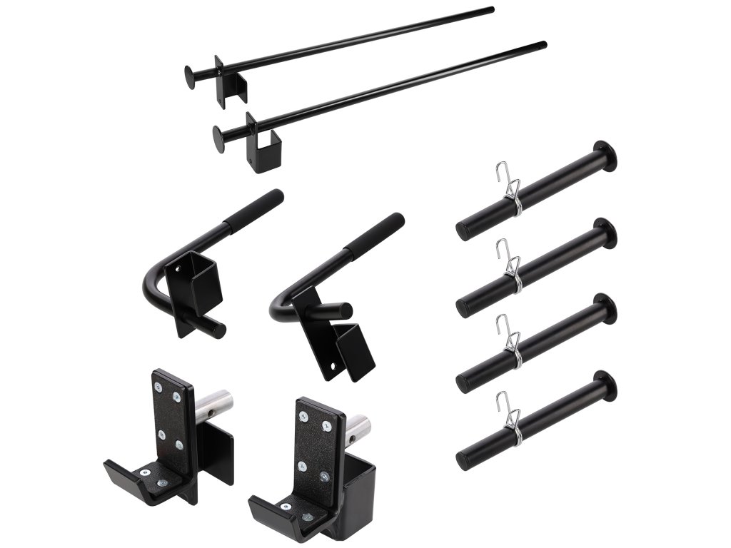 Klec KLT3111 je vybavena hrazdou na shyby, která vám umožní efektivně posilovat zádové, ramenní a břišní svaly. Adaptér na dipy navíc umožňuje intenzivní trénink tricepsů a prsních svalů. Díky hákům na osu je KLT3111 také ideální na dřepy, tlaky na lavici a další silová cvičení, která můžete provádět v domácím prostředí.
