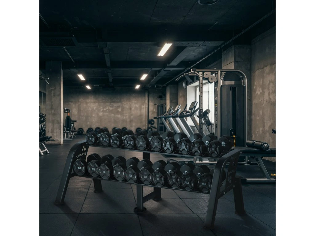 STR47 je robustní a promyšleně navržený dvouúrovňový stojan, který umožňuje uložení až 20 činek. Díky vysoké kapacitě a stabilní konstrukci se skvěle hodí jak do fitness klubů, tak do domácích tréninkových zón.