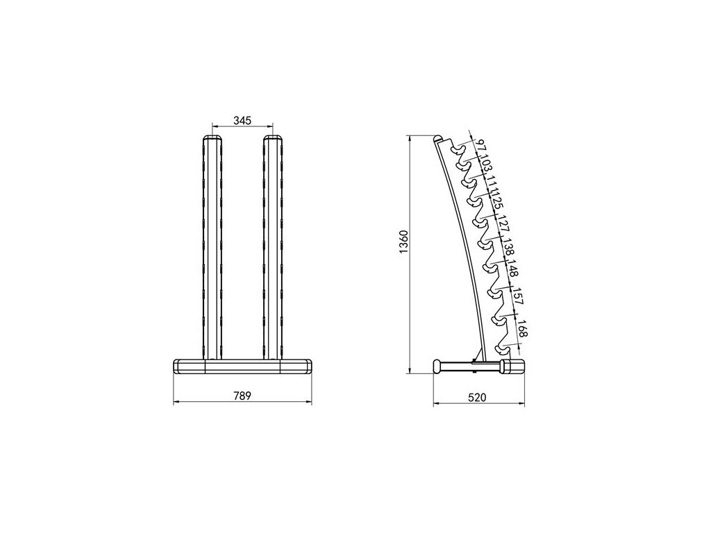 Díky své vertikální konstrukci umožňuje STR37 optimální využití tréninkového prostoru. Je to ideální řešení pro ty, kteří chtějí udržet pořádek ve své posilovně a zároveň mít činky vždy snadno dostupné.