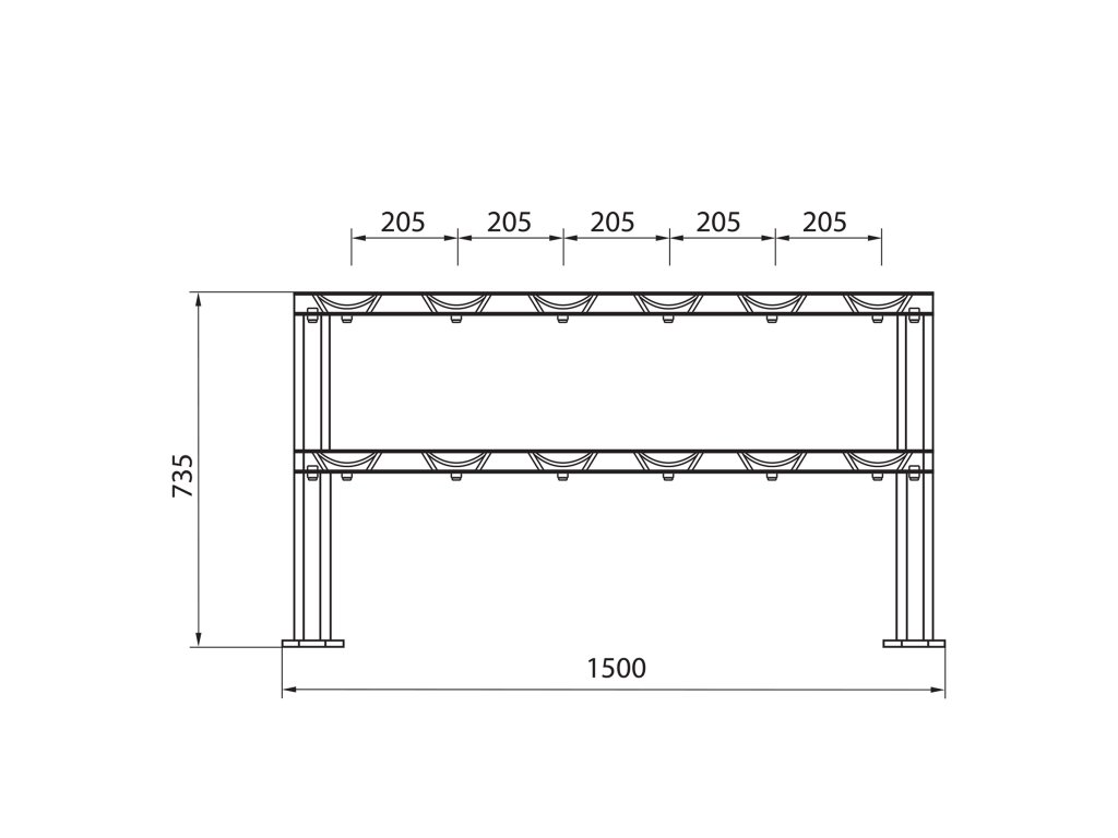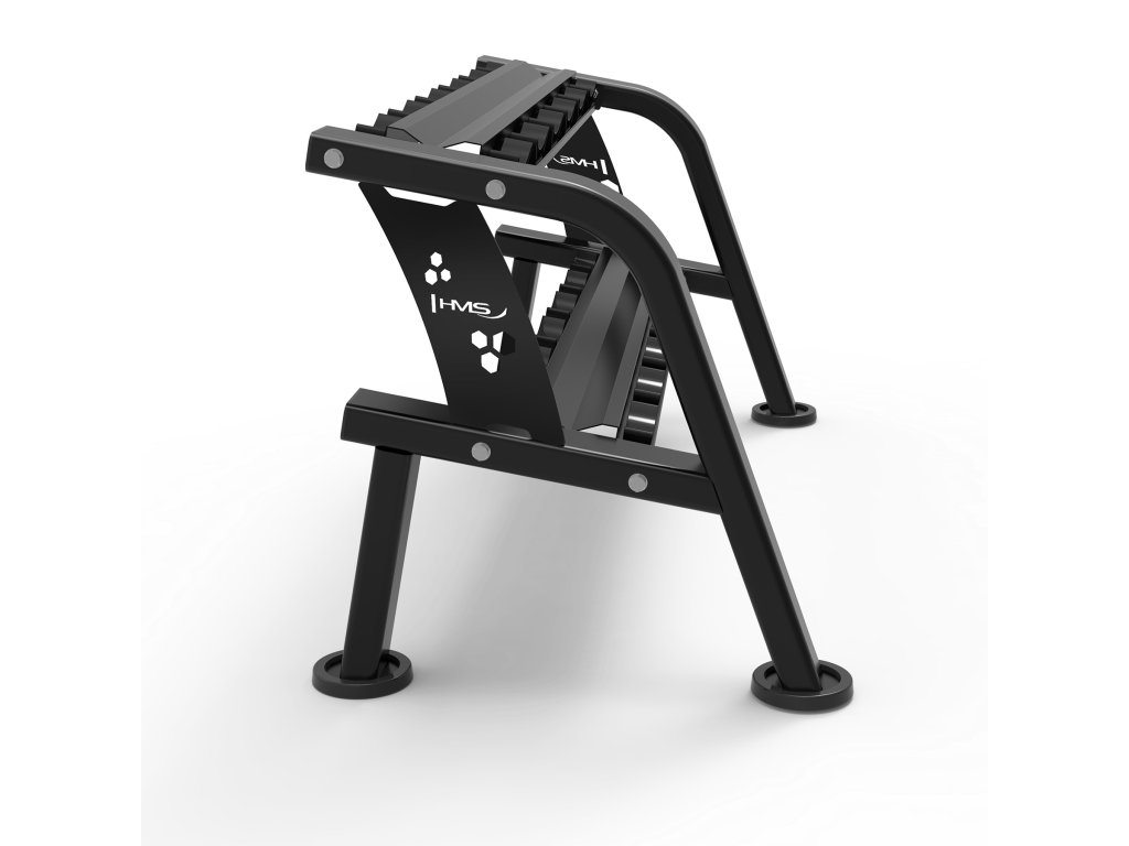 Stojan STR48 je vybaven dvěma prostornými policemi, které pojmou více než klasická řešení - až 12 činek. Mírně nakloněná plocha umožňuje pohodlné uchopení činek, čímž se zamezuje nadměrnému kroucení zápěstí, což zvyšuje pohodlí a chrání klouby.
