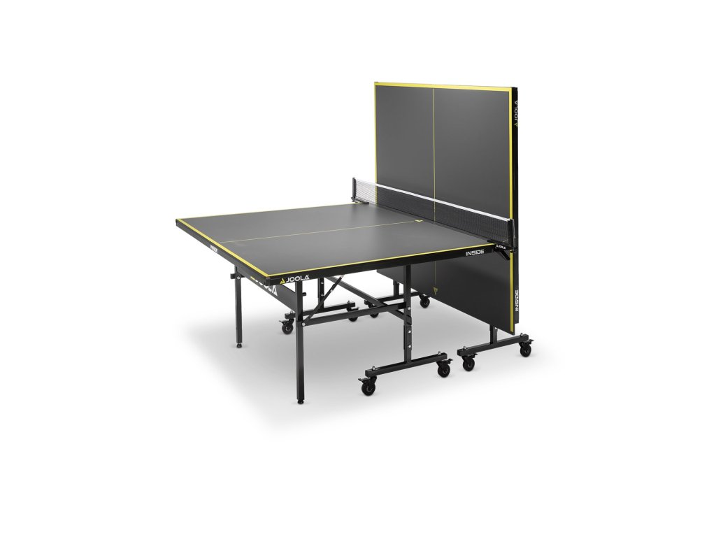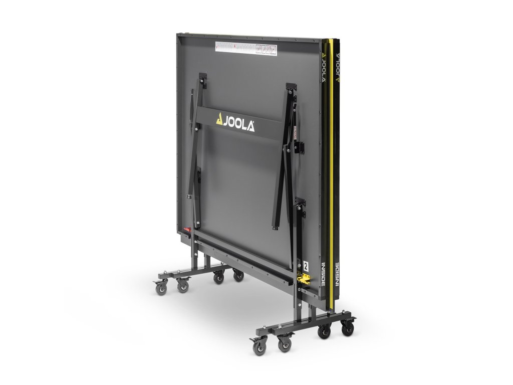 Tento stůl na stolní tenis má dvě oddělené, sklopné poloviny, s nimiž lze stůl snadno nastavit do polohy pro hru samostatného hráče. Halový stůl na stolní tenis Joola J15 má dvojitou pojistku pro sklápění a výškově nastavitelné patky pro zajištění rovné hrací plochy. Také přesun stolu je pohodlný, protože dvě samostatné desky mají pogumovaná kolečka, takže se snadno přesouvají. 3palcová kolečka s brzdami propůjčují stolu bezpečnost, stabilitu a mobilitu.