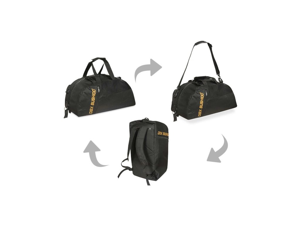 Sportovní taška 2v1 DBX BUSHIDO DBX-SB-20 je vybavena kapsou na zip, ve které se ukrývají popruhy, ty lze snadno vyjmout a taška se tak promění na batoh. Variabilita popruhů umožňuje použití modelu DBX-SB-20 jako klasickou sportovní tašku, tašku přes rameno a nebo batoh.