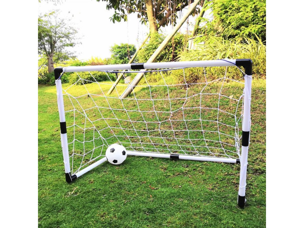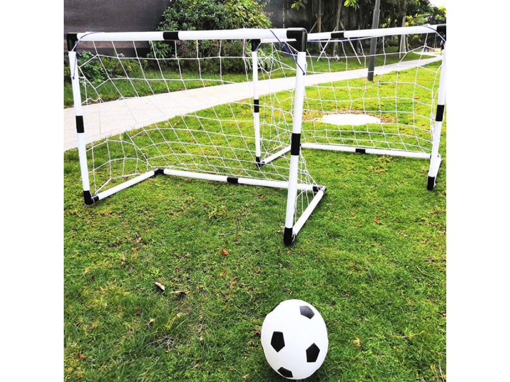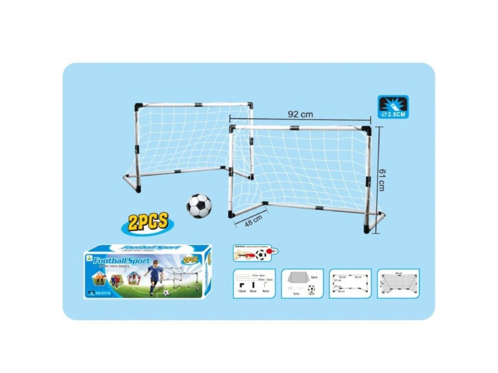 Merco Garden Goal Set je sada dvou skládacích branek na mini fotbálek s rodinou a přáteli. Branky jsou vyrobené z lehkého PVC materiálu, jejich rozměry jsou 92 x 61 x 48 cm a jejich montáž je rychlá a jednoduchá. Balení také obsahuje dvě polyesterové sítě, malý gumový míček s průměrem 13 cm, ruční pumpičku s jehlou a kovové háčky pro upevnění branek do země. Pokud nemáte zahradu, nevadí. Díky malému rozměru balení a nízké hmotnosti si tento set vezmete i na dovolenou či do parku. - sada: 2 branky se sítí, míček, pumpička, háčky do země - materiál: PVC - rozměry branky: 92 x 61 x 48 cm - rozměry balení: 57 x 22 x 8 cm - hmotnost balení: 1,1 kg - není vhodné pro děti mladší 3 letDoplňkové parametry